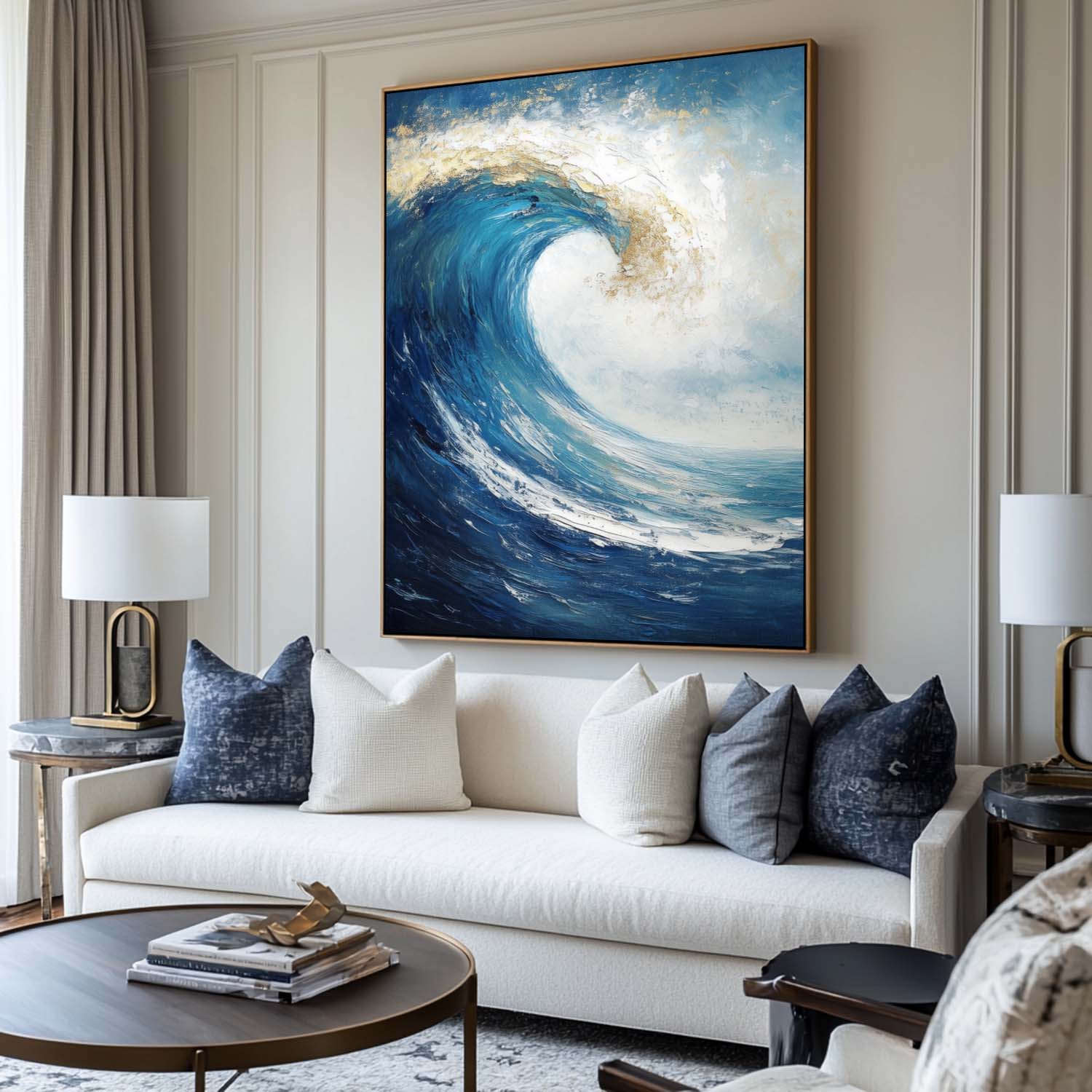 Majestic Blue Wave Oil Painting - Vibrant Seascape Art for Beach Lovers