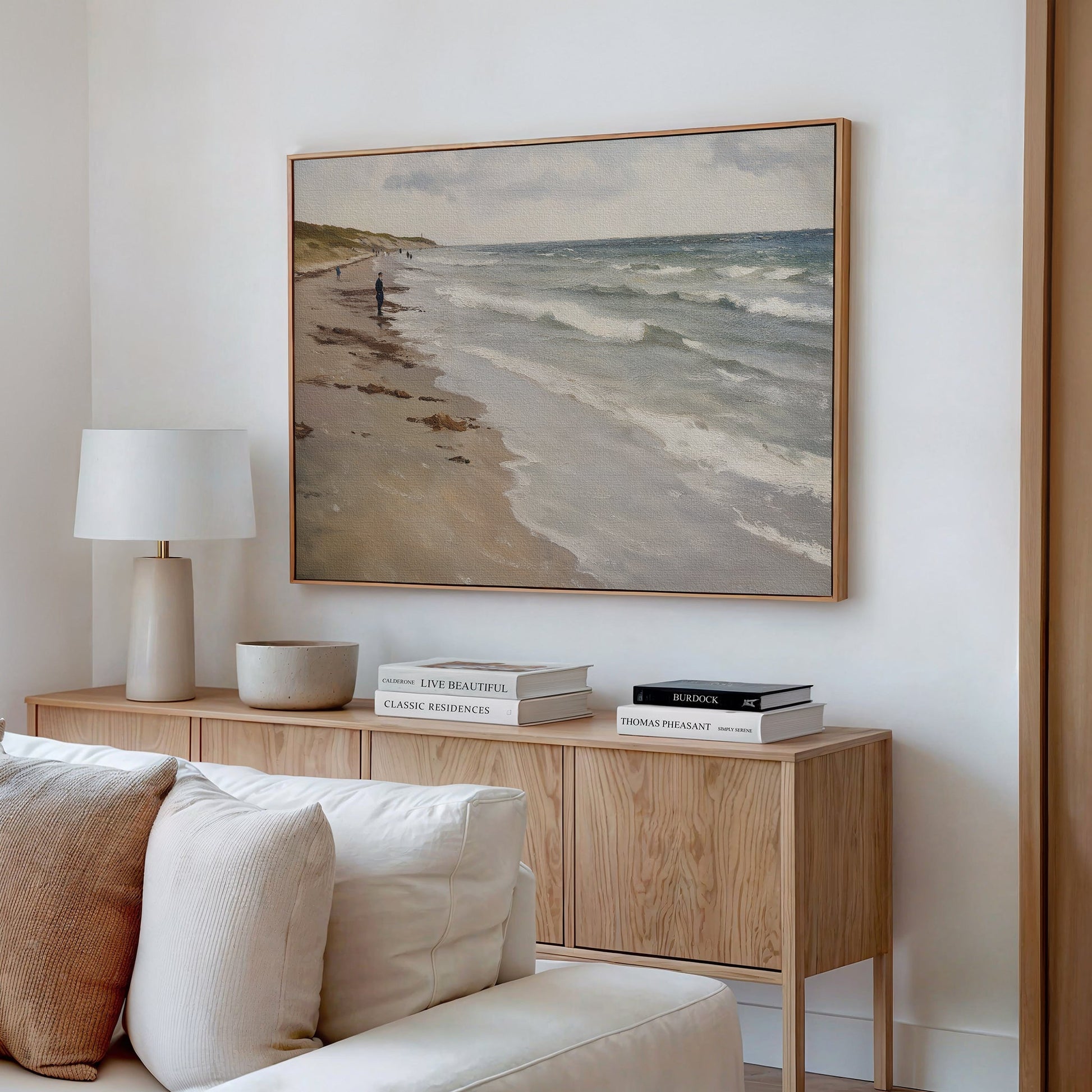 Serene Beach Walk Oil Painting - Tranquil Coastal Landscape Art for Home Decor