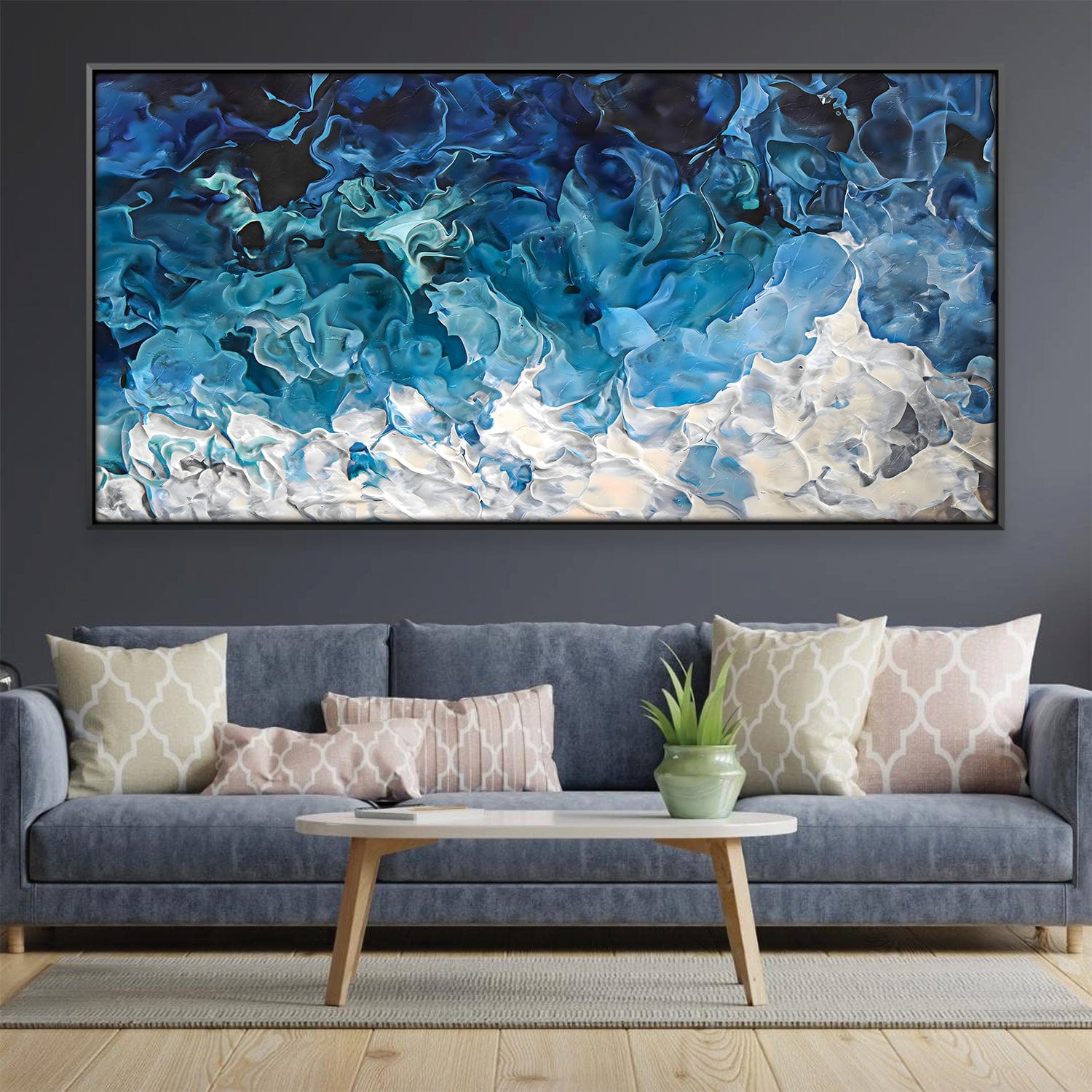 Tranquil Blue Waves: Abstract Oil Painting for Serene Home Decor