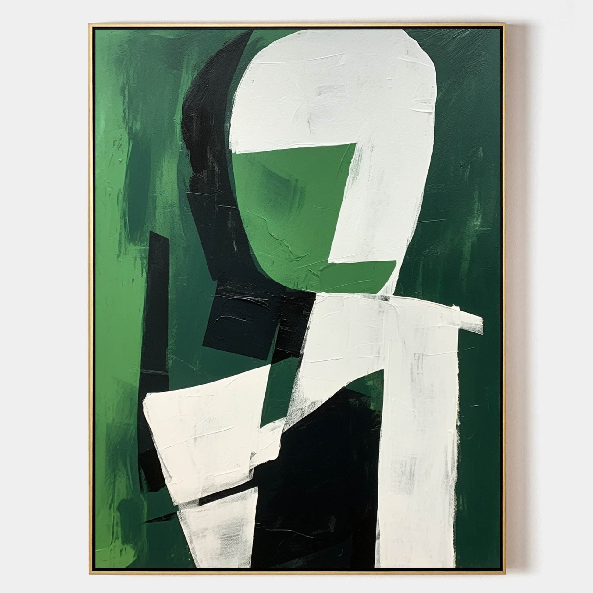 Modern Abstract Oil Painting in Green and White for Minimalist Decor