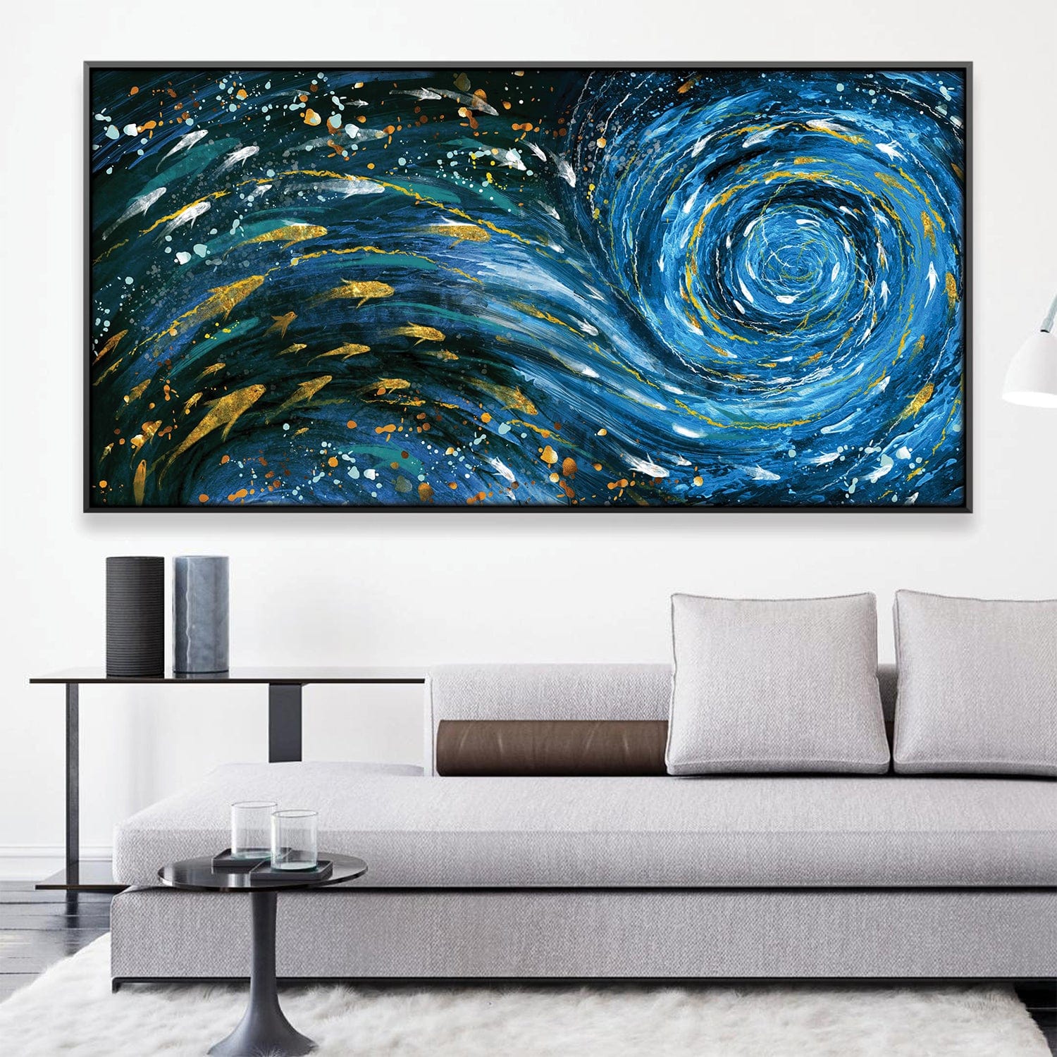 Whirling Blue Waves Abstract Oil Painting for Modern Home Decor
