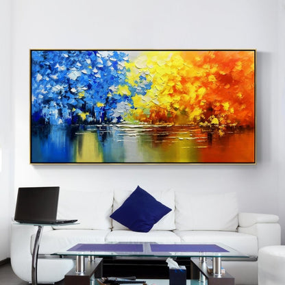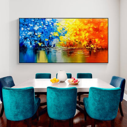 Discover the beauty of our vibrant oil painting, Seasonal Colors Reflecting in Tranquil Waters. This stunning artwork captures the essence of nature's palette, showcasing rich hues that dance upon serene waters. Ideal for art lovers and collectors, this captivating piece brings warmth and tranquility to any space. Enhance your home decor with this unique reflection of seasonal beauty today!