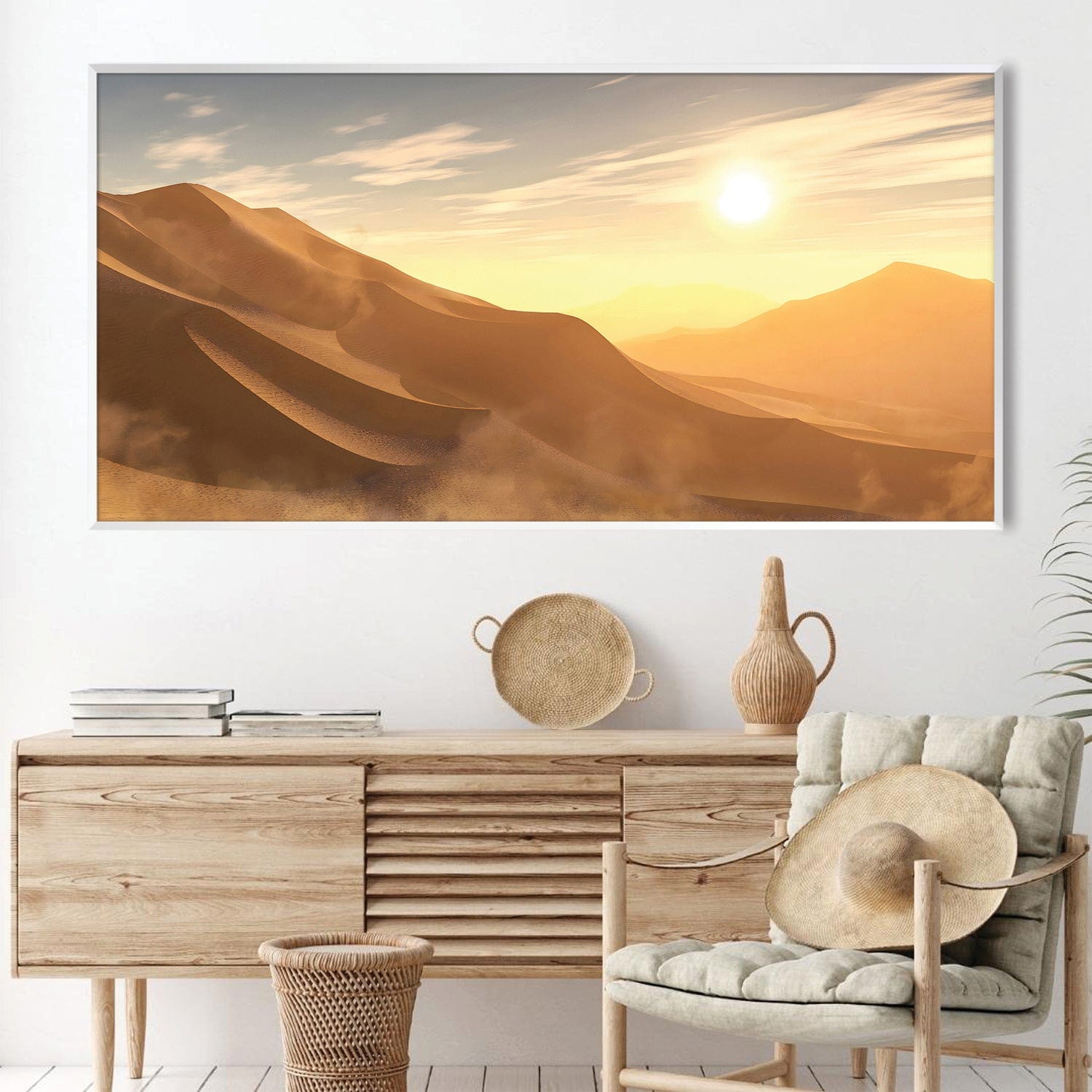 Experience the breathtaking beauty of a stunning oil painting capturing a desert sunrise over rolling sand dunes. This mesmerizing artwork blends vibrant colors and exquisite details, evoking the tranquility of nature's splendor. Perfect for art lovers and collectors, this piece brings the warmth and serenity of the desert into any space. Discover the magic of this captivating masterpiece and elevate your interior decor today!