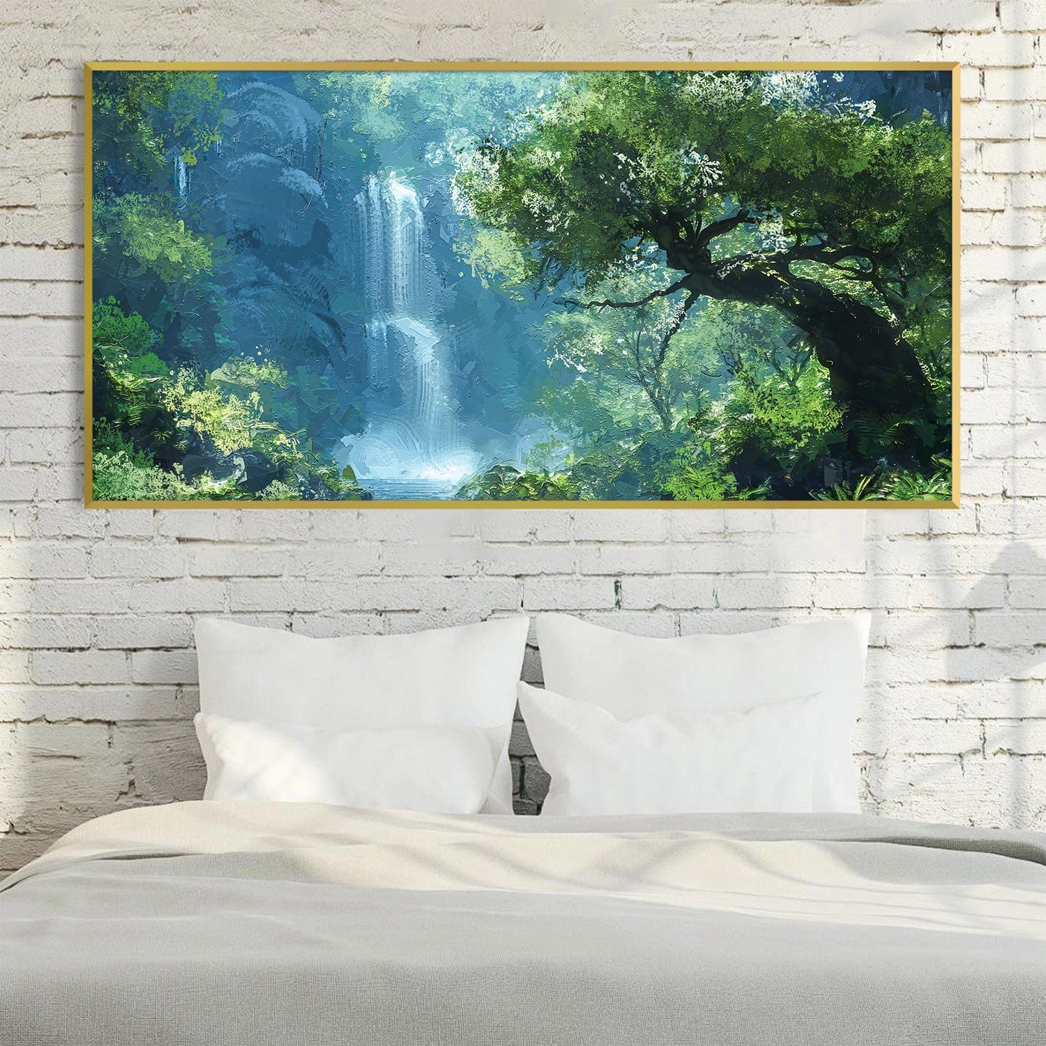 Transform your living space with our captivating 'Lush Waterfall Oasis' oil painting. Perfect for serene home décor, this exquisite artwork brings tranquility and natural beauty into your home. Discover the vibrant colors and soothing imagery that create a perfect focal point for any room. Enhance your interior design with this stunning piece that combines elegance with a touch of nature’s magic. Shop now to elevate your space with the calming essence of a tropical oasis!