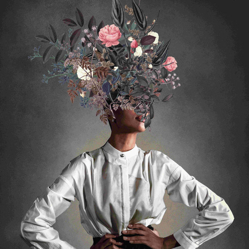 Ethereal Floral Portrait Art - Modern Canvas Painting for Contemporary Decor