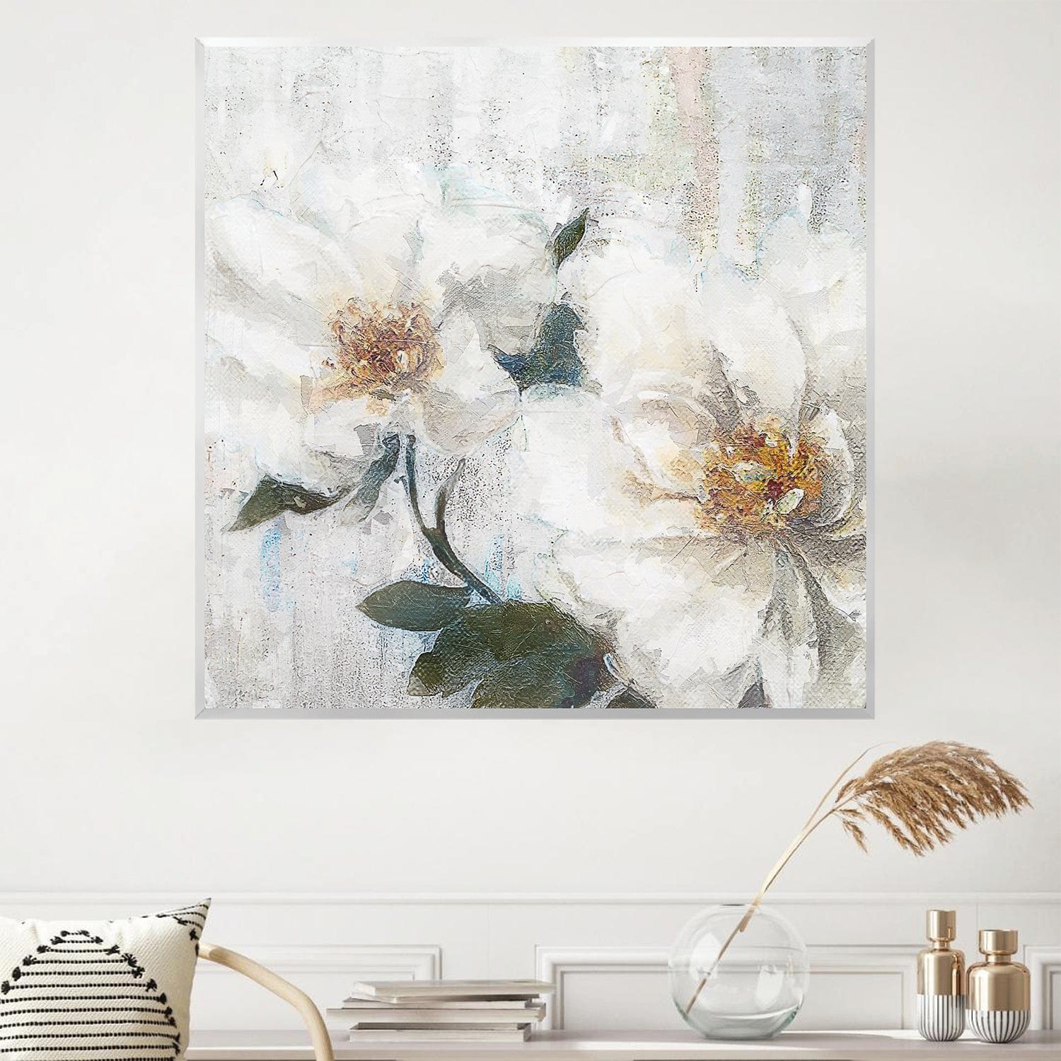 Elegant White Floral Oil Painting for Modern Home Decor
