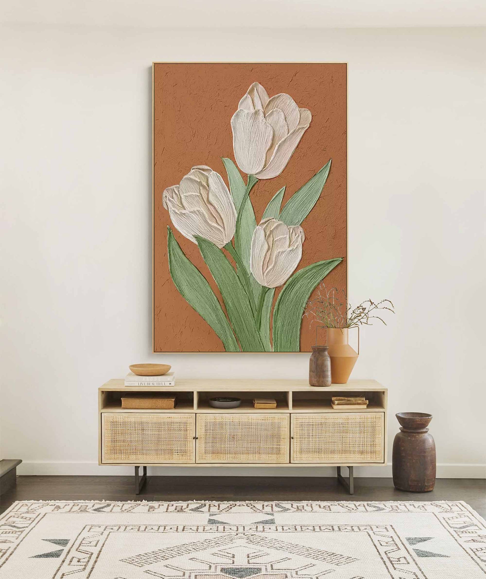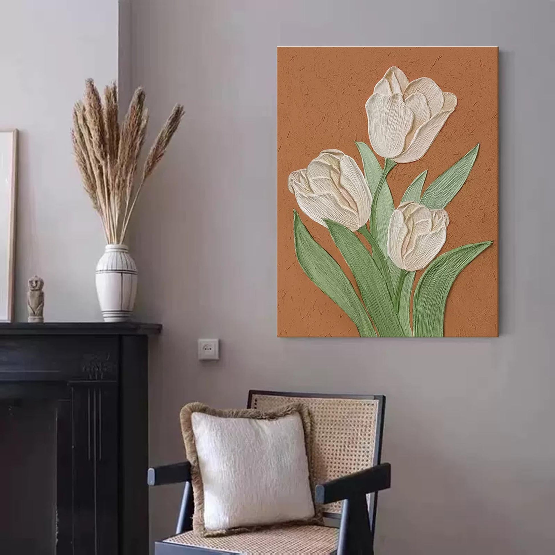 Discover the stunning beauty of our Elegant Cream Tulips Oil Painting on Brown Canvas, a timeless piece of floral wall art decor that enhances any room. With its captivating blend of soft cream tones and rich brown hues, this exquisite painting brings a touch of elegance and tranquility to your space. Perfect for art lovers and home decorators alike, this unique oil painting makes a gorgeous statement in living rooms, bedrooms, or offices. Transform your walls with this enchanting tulip artwork and elevate your interior decor today!