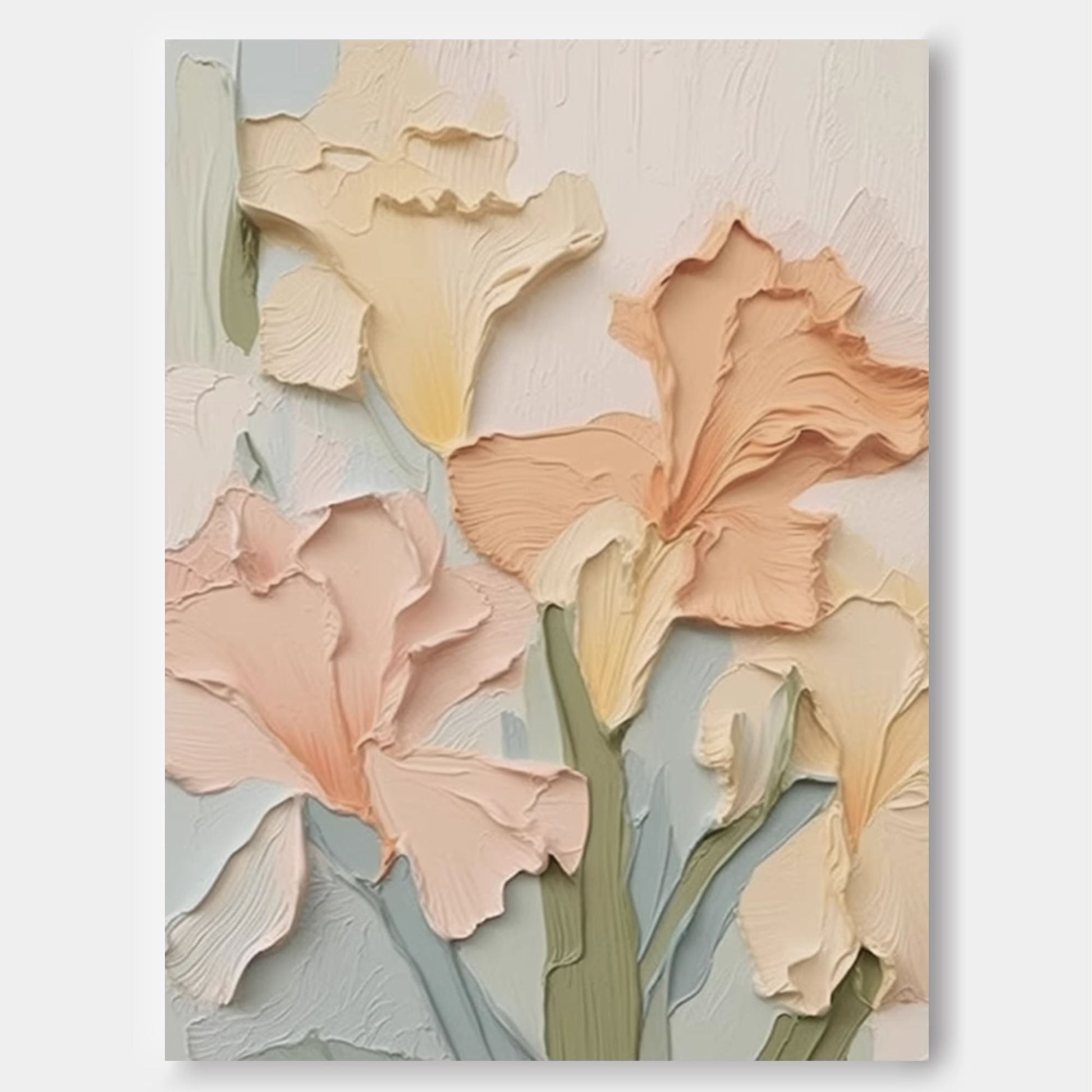 Pastel Floral Oil Painting - Elegant Flower Canvas Art for Home Decor