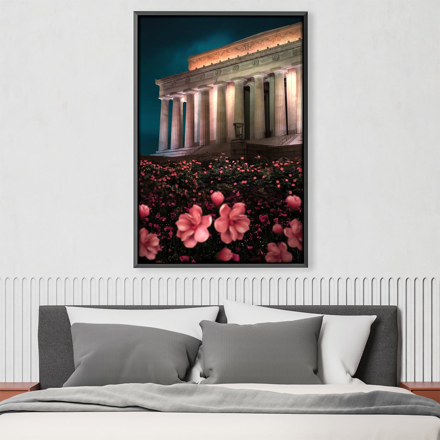 Blooming Flowers at Historic Monument – Beautiful Oil Painting for Home Decor