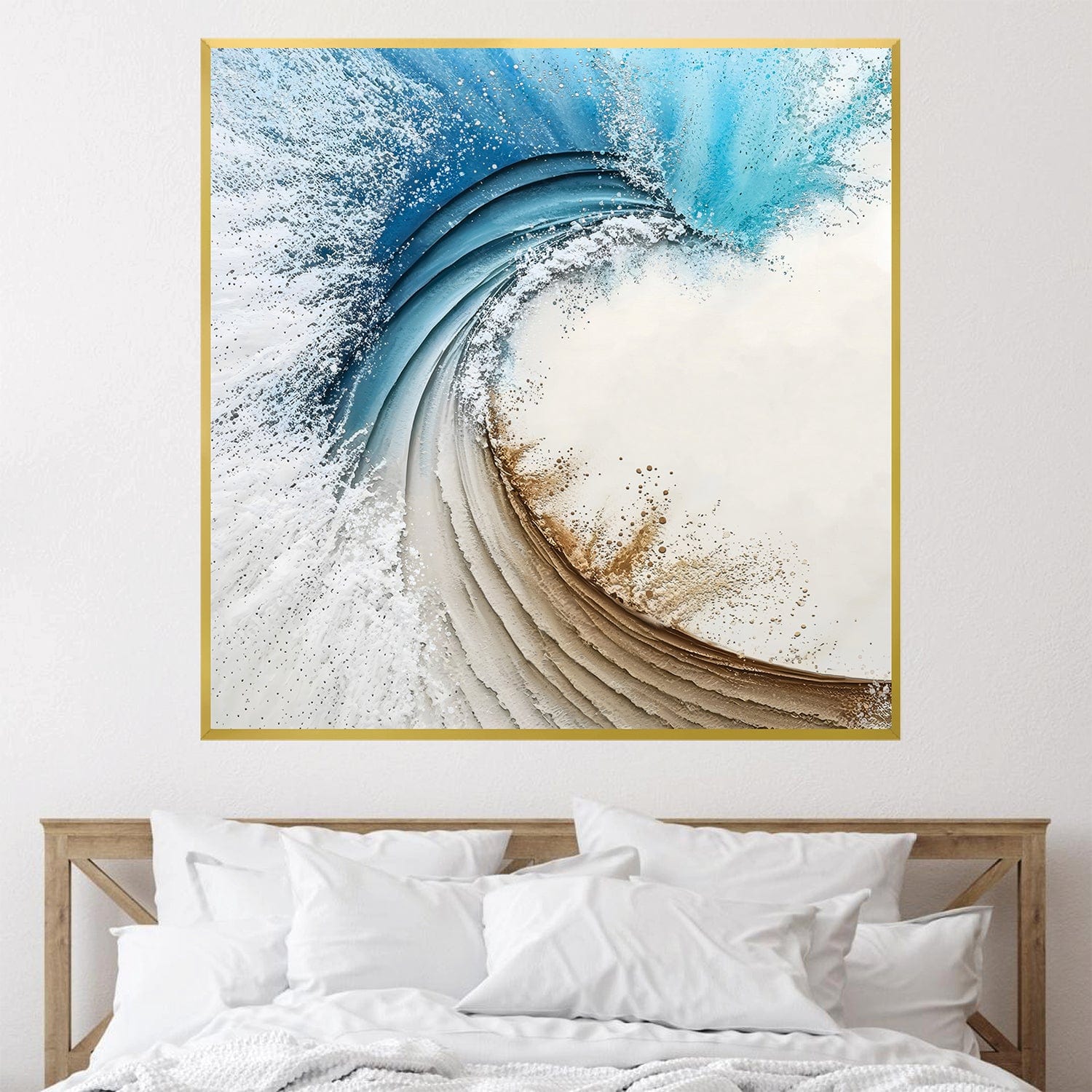 Dynamic Ocean Wave Abstract Oil Painting for Coastal Home Decor