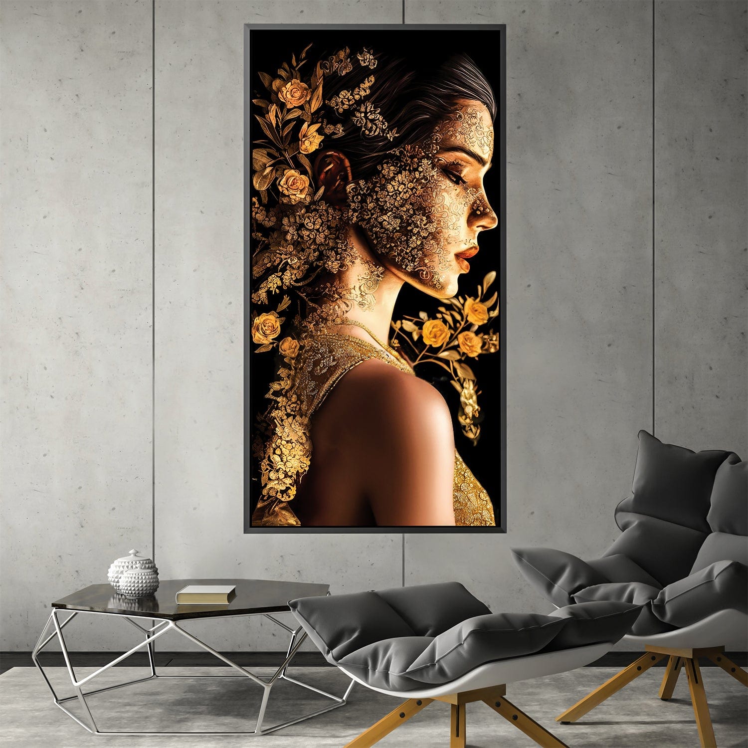 Elegant Golden Floral Portrait Oil Painting for Modern Decor