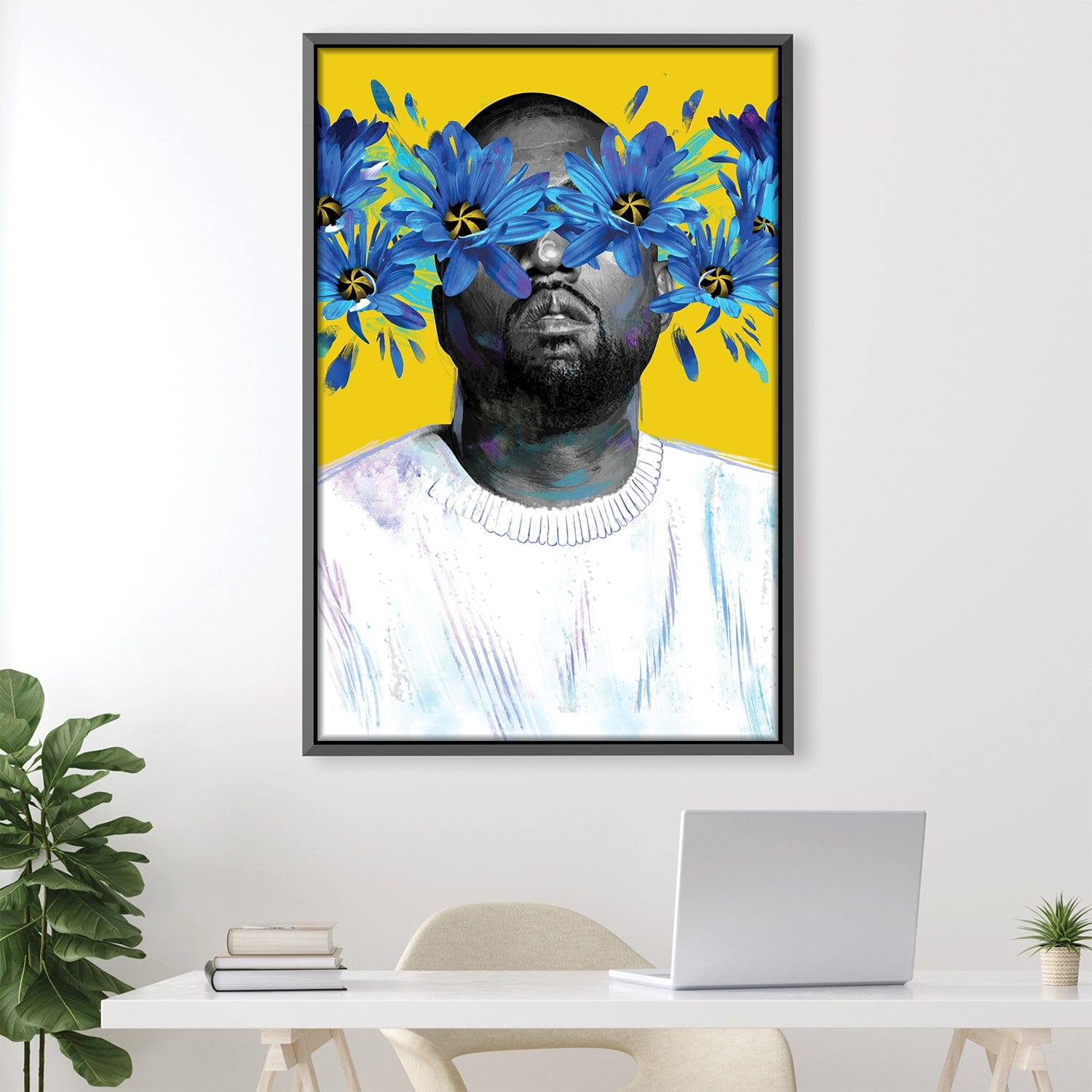 Vibrant Floral Portrait of Iconic Artist on Canvas