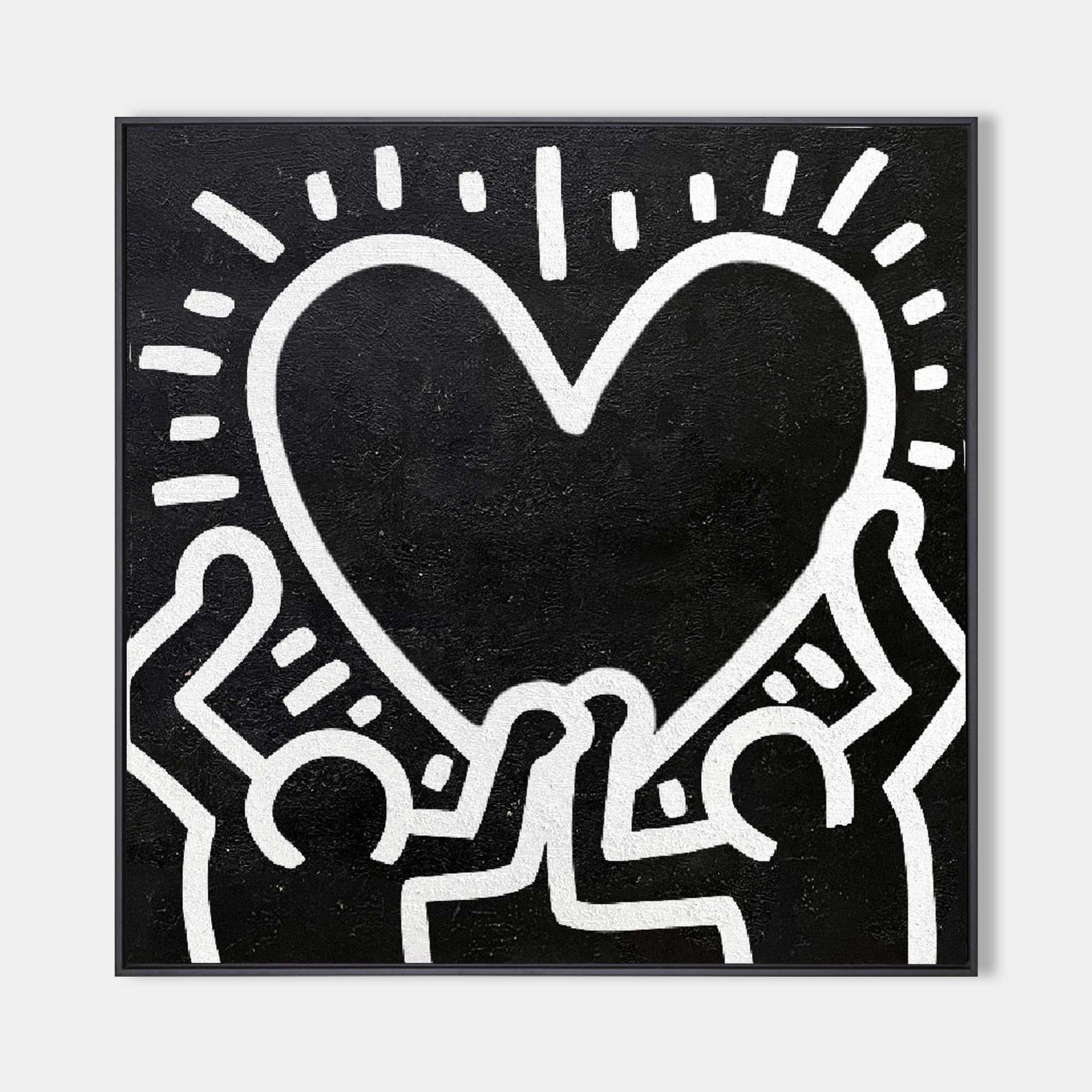 Bold Heart Embrace - Modern Abstract Oil Painting Inspired by Street Art