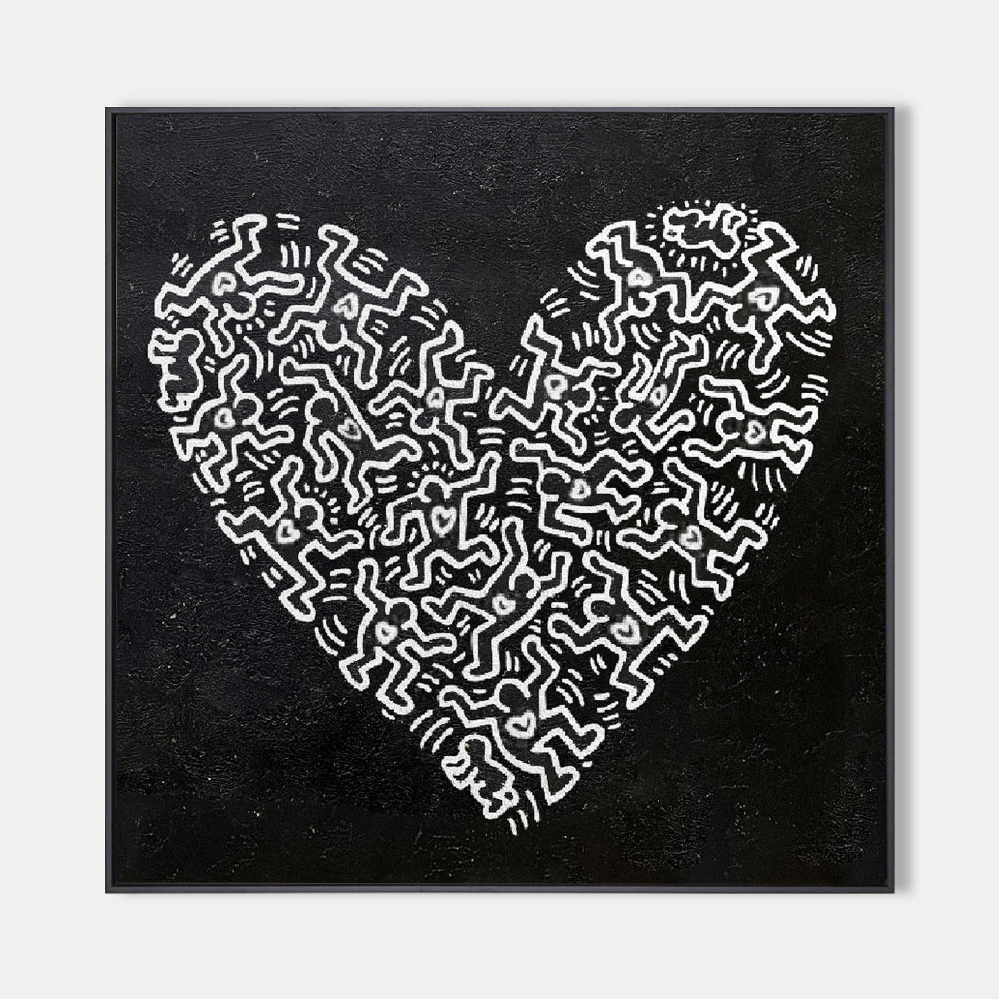 Discover a stunning abstract heart oil painting that captivates with its bold black and white design, inspired by the iconic style of Keith Haring. This unique artwork blends emotion and creativity, making it a perfect centerpiece for modern decor. Explore the interplay of form and contrast that brings this contemporary masterpiece to life. Ideal for art lovers seeking a striking addition to their collection or as a thoughtful gift for someone special. Embrace the passion of abstract art with this Haring-inspired piece today!