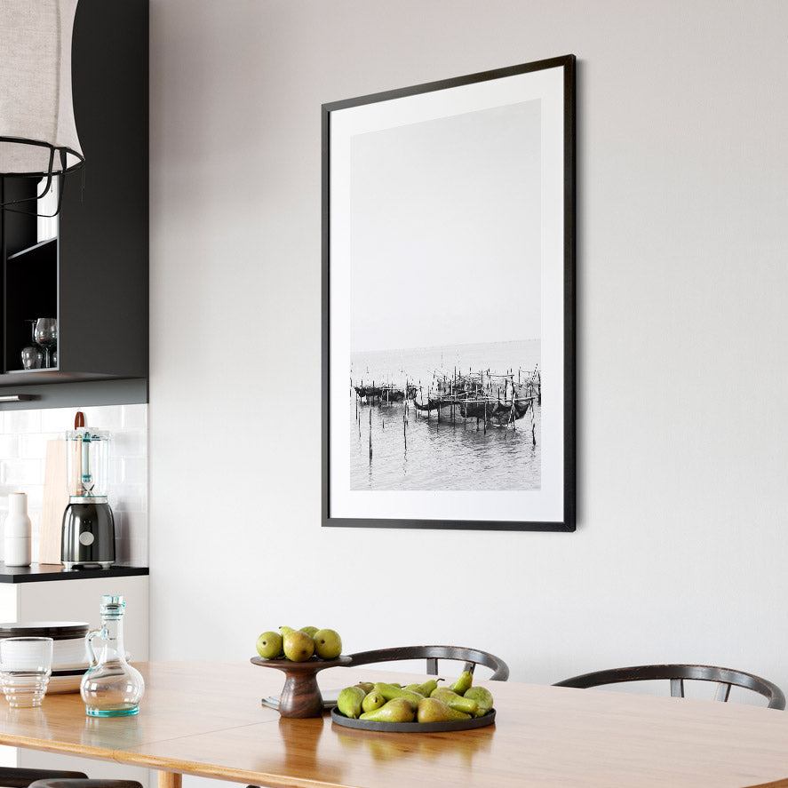 Discover the captivating beauty of our Serene Black and White Oil Painting of Traditional Fishing Boats in Still Waters. This stunning artwork skillfully captures the tranquility of traditional fishing vessels gently reflected on calm waters, creating a harmonious balance between nature and craftsmanship. Perfect for art lovers and collectors, this timeless piece adds elegance to any space. Explore our collection to find inspiration for your home decor and embrace the serene charm of this exquisite black and white oil painting.