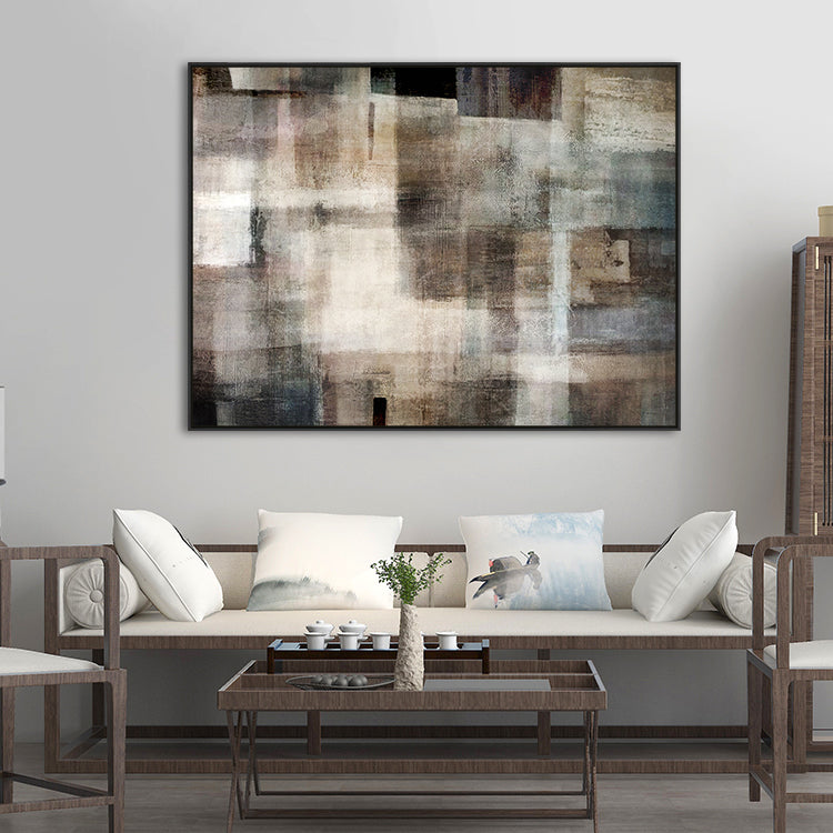 Abstract Oil Painting in Soft Earth Tones for Modern Home Decor
