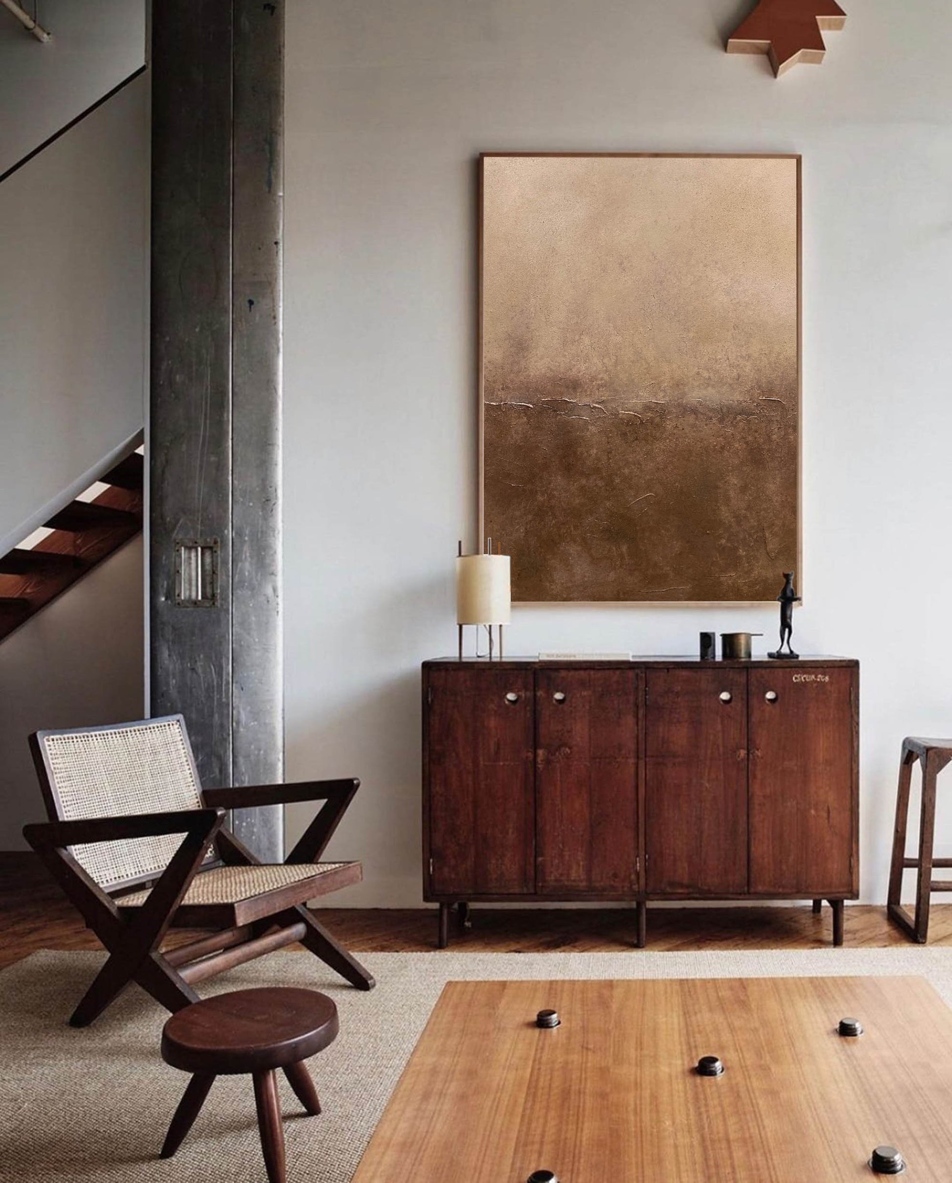 Elegant Minimalist Abstract Oil Painting in Earthy Tones for Modern Décor