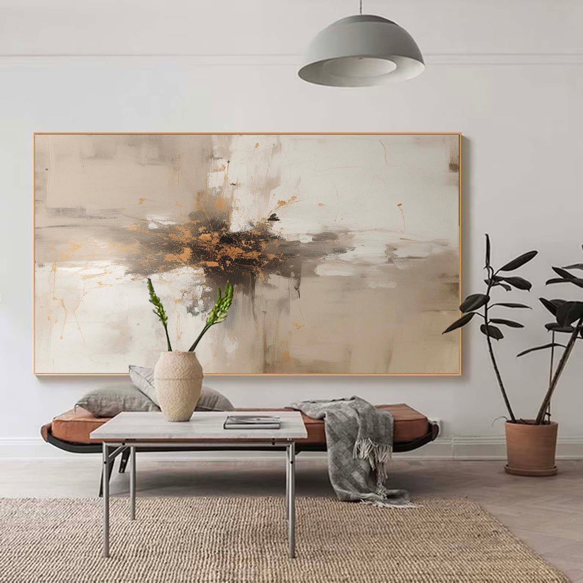 Elegant Minimalist Abstract Oil Painting with Gold Accents for Modern Decor