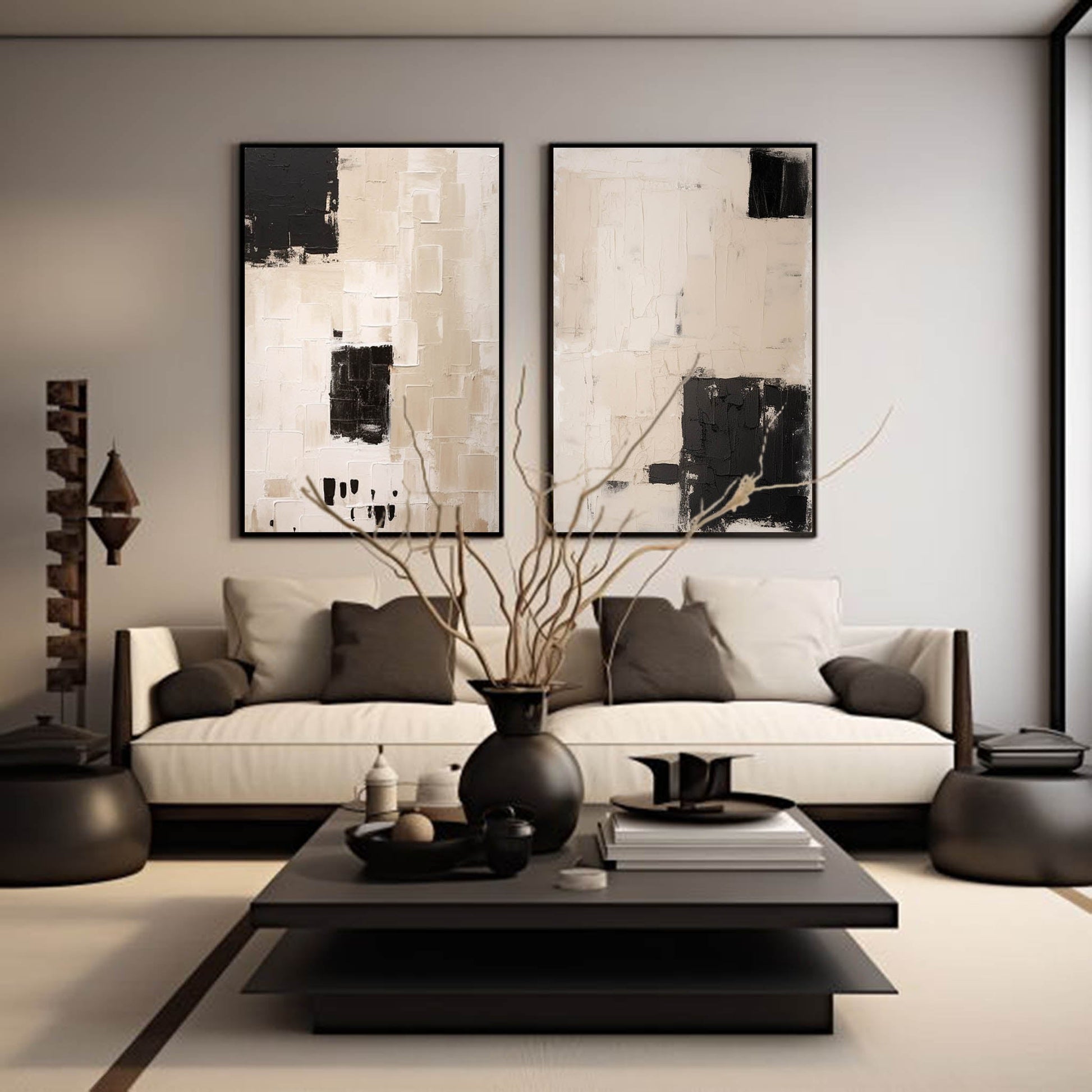 Modern Minimalist Black and White Abstract Oil Painting for Contemporary Decor