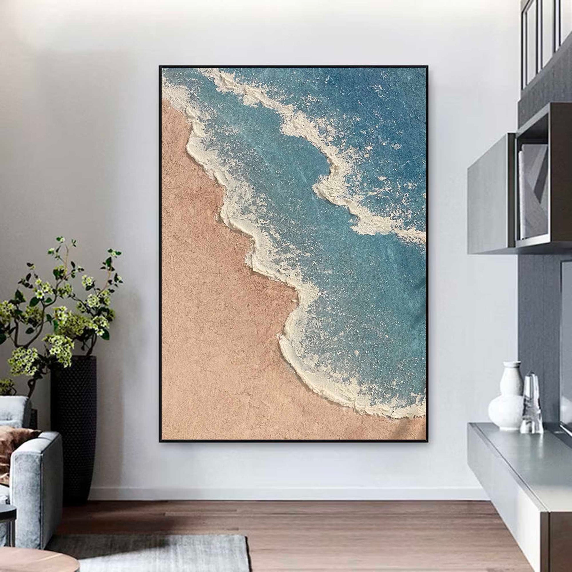 Serene Minimalist Ocean Landscape Oil Painting for Tranquil Home Decor