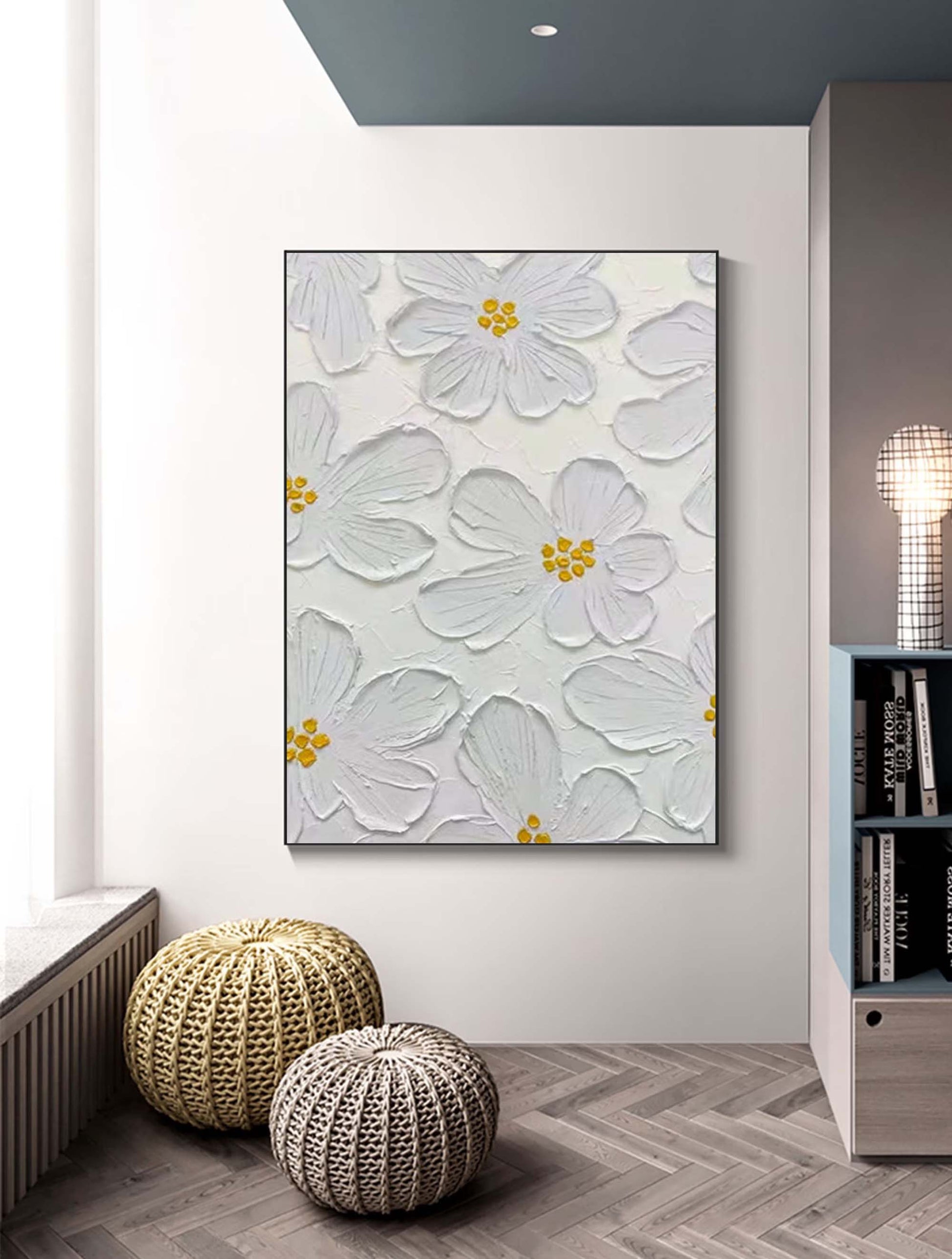 Transform your minimalist home decor with our Elegant White Floral Oil Painting. Perfectly crafted to bring a touch of sophistication and tranquility, this stunning artwork features delicate white flowers that complement modern aesthetics. Ideal for creating a serene ambiance, this piece enhances any room while remaining a timeless focal point. Elevate your space with this exquisite oil painting today!