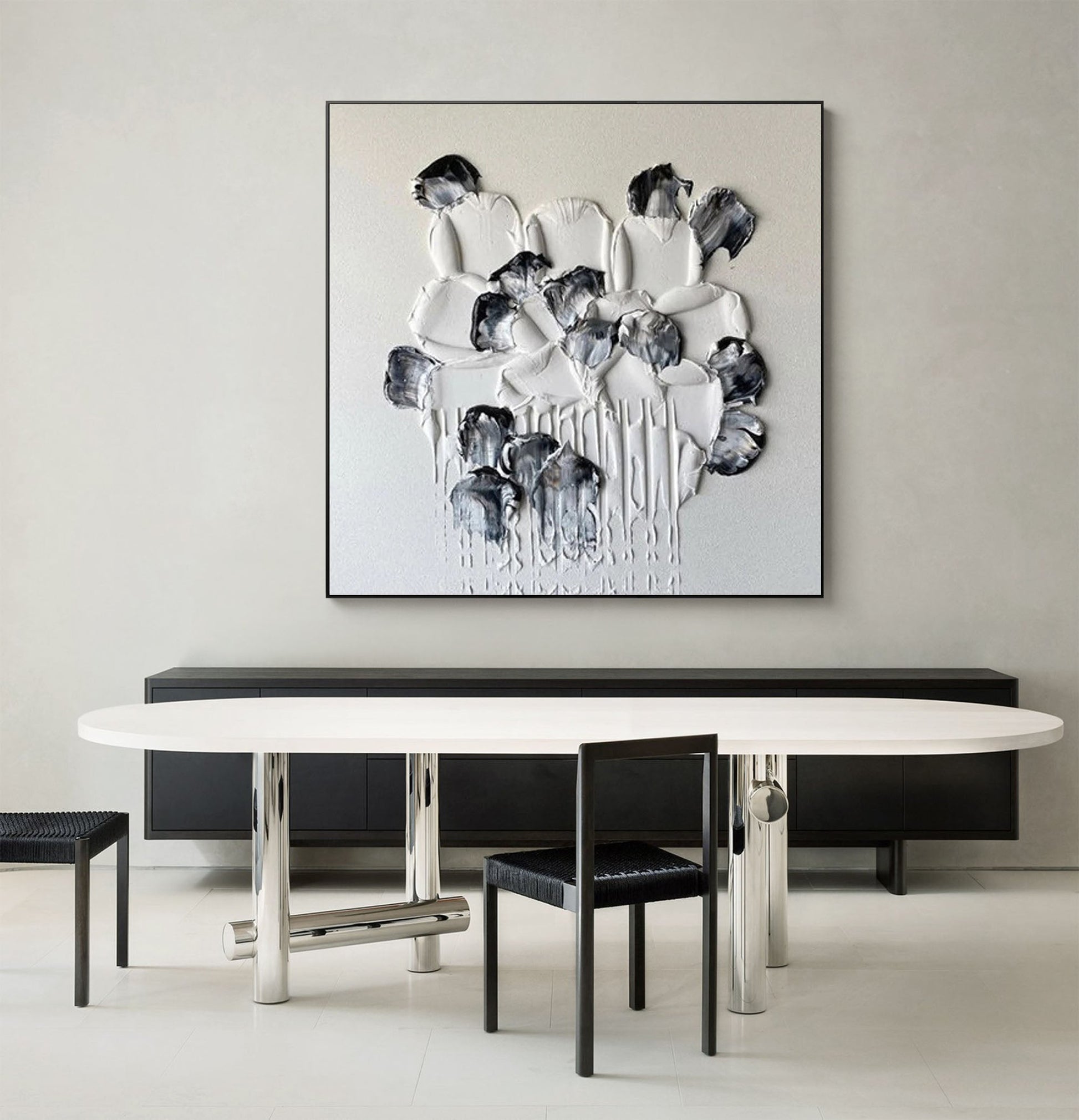 Elegant Minimalist Black and White Flower Oil Painting for Modern Decor