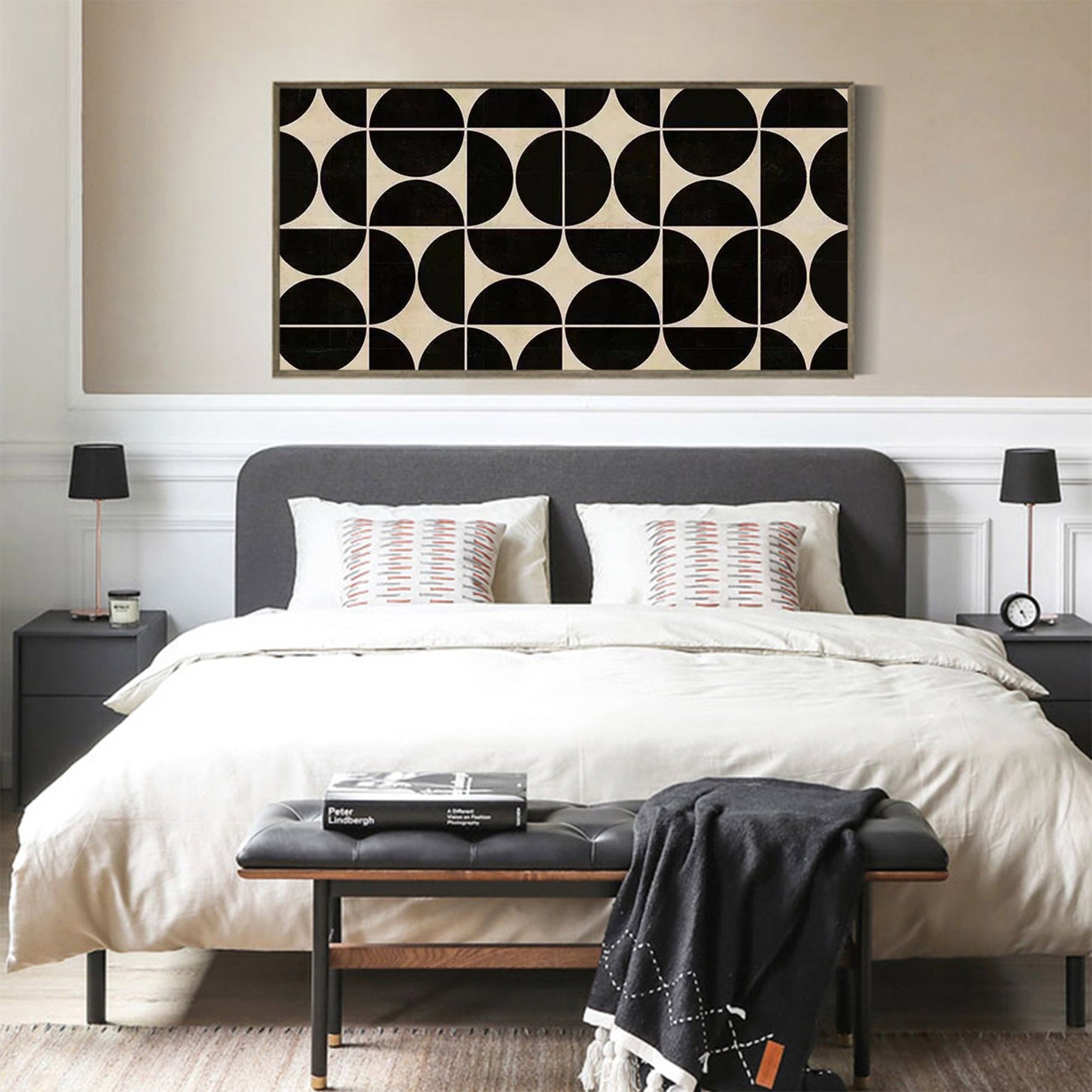 Contemporary Black and White Geometric Oil Painting for Modern Interiors