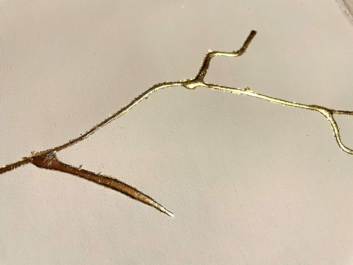 Elegant Minimalist Abstract Oil Painting with Gold Detailing