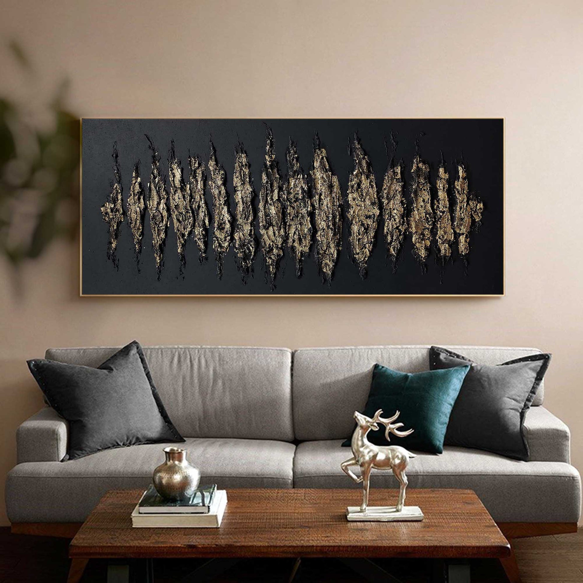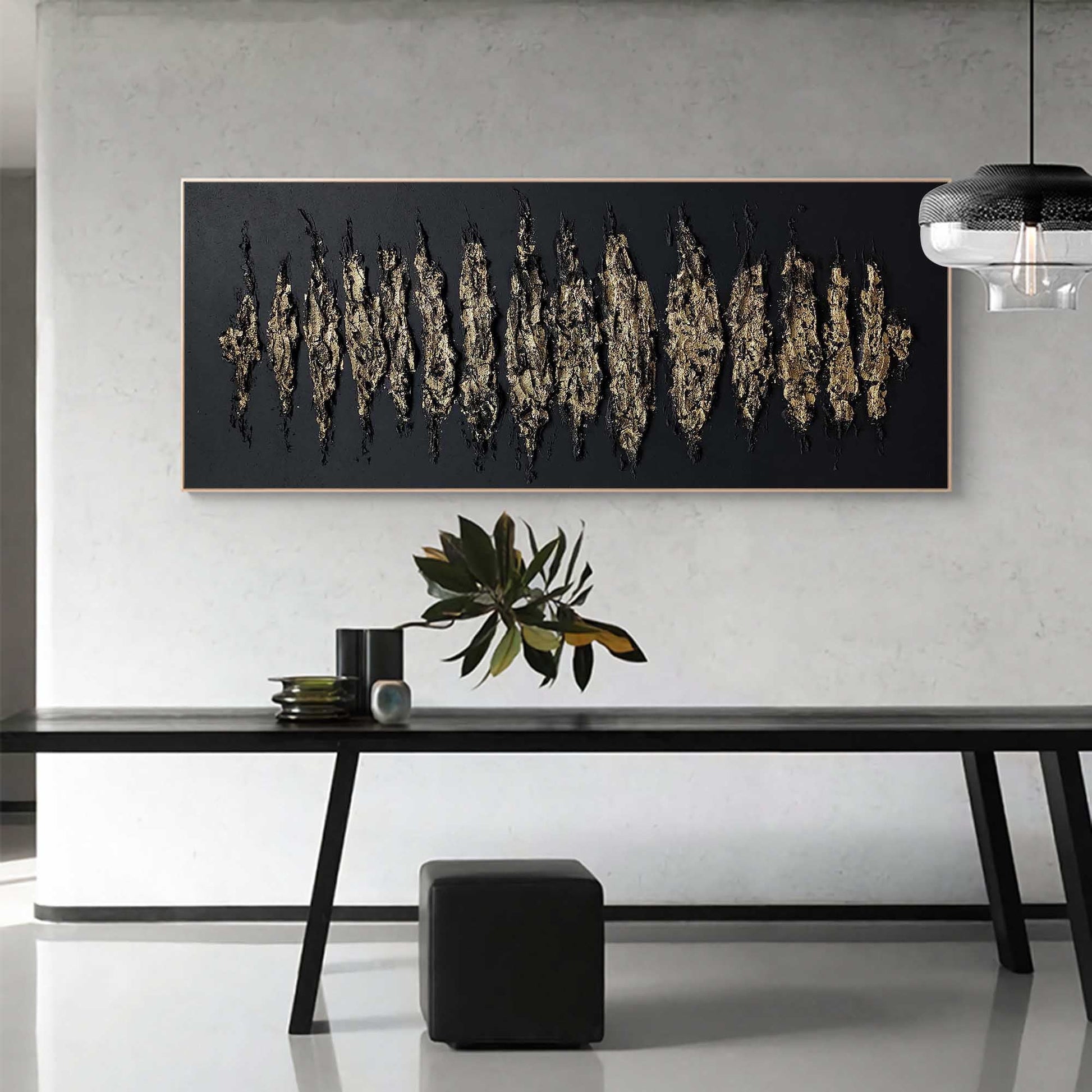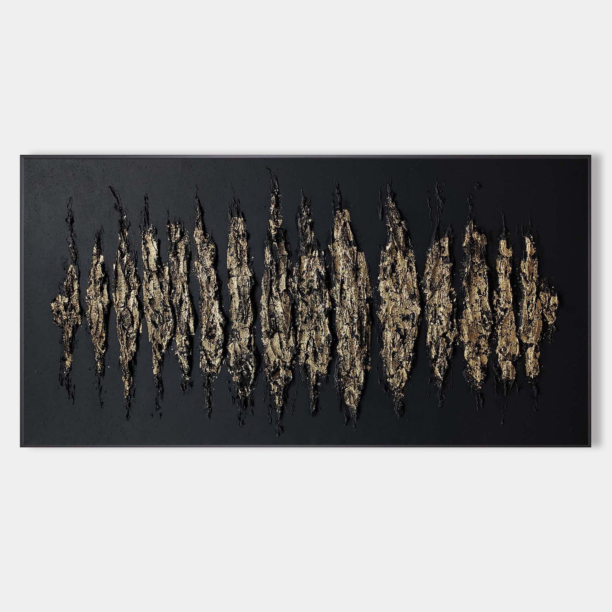 Contemporary Gold and Black Abstract Oil Painting for Modern Home Decor