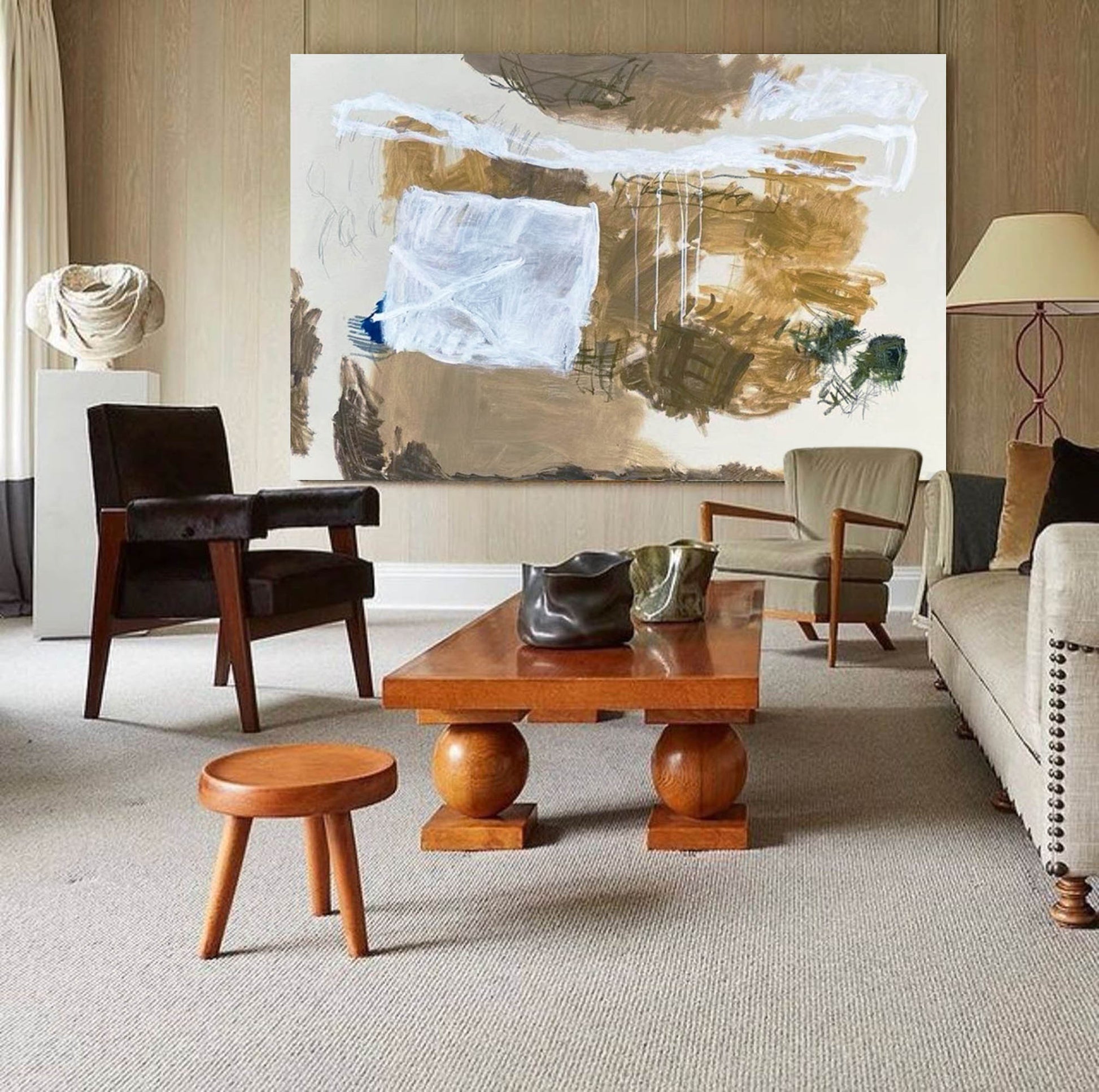 Contemporary Abstract Oil Painting with Dynamic Textures and Earthy Tones