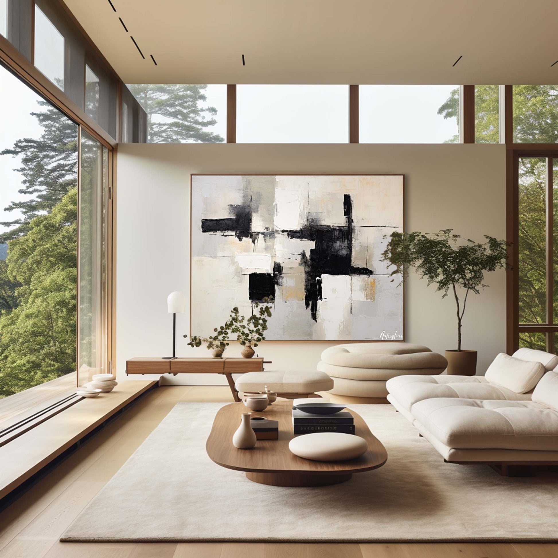 Contemporary Black and White Abstract Oil Painting for Modern Art Decor