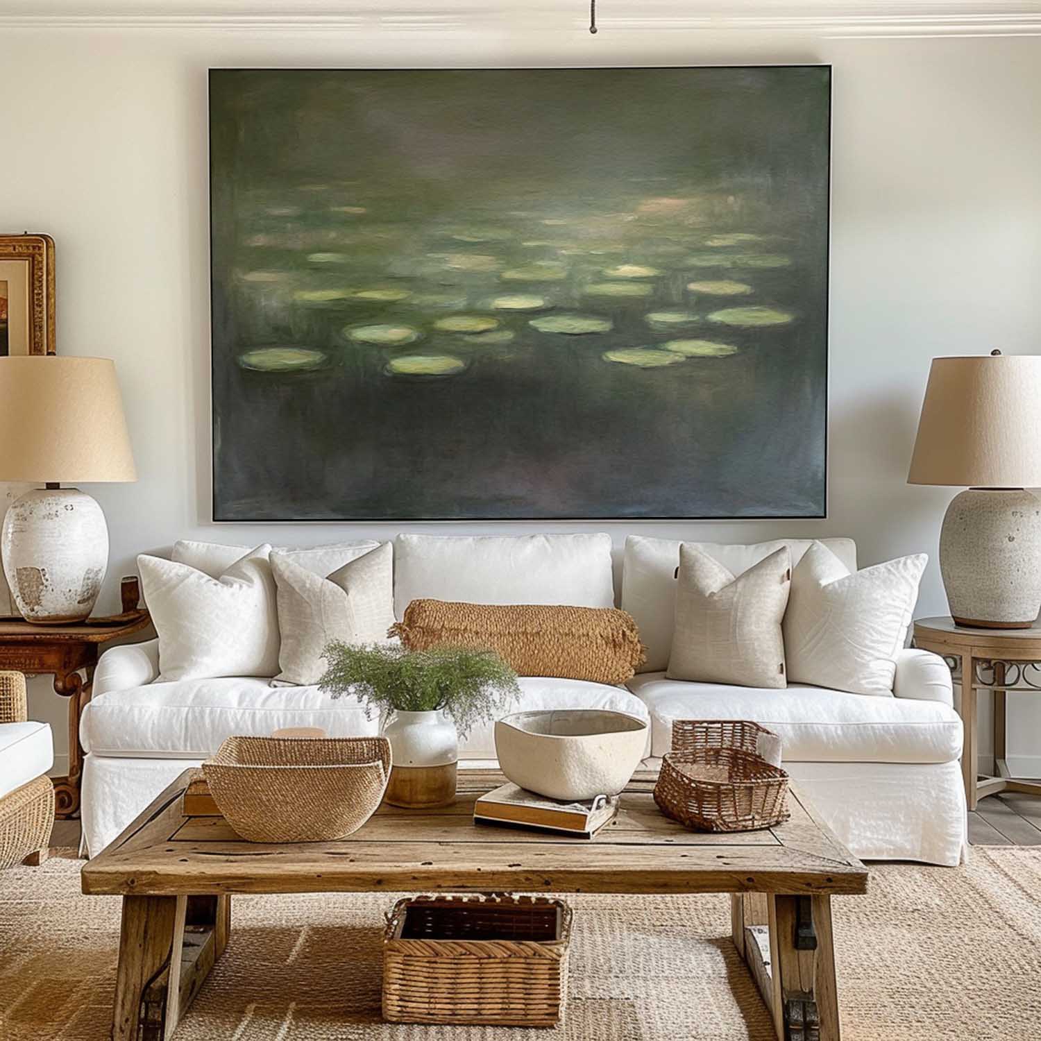 Serene Modern Abstract Oil Painting of Tranquil Water Lilies