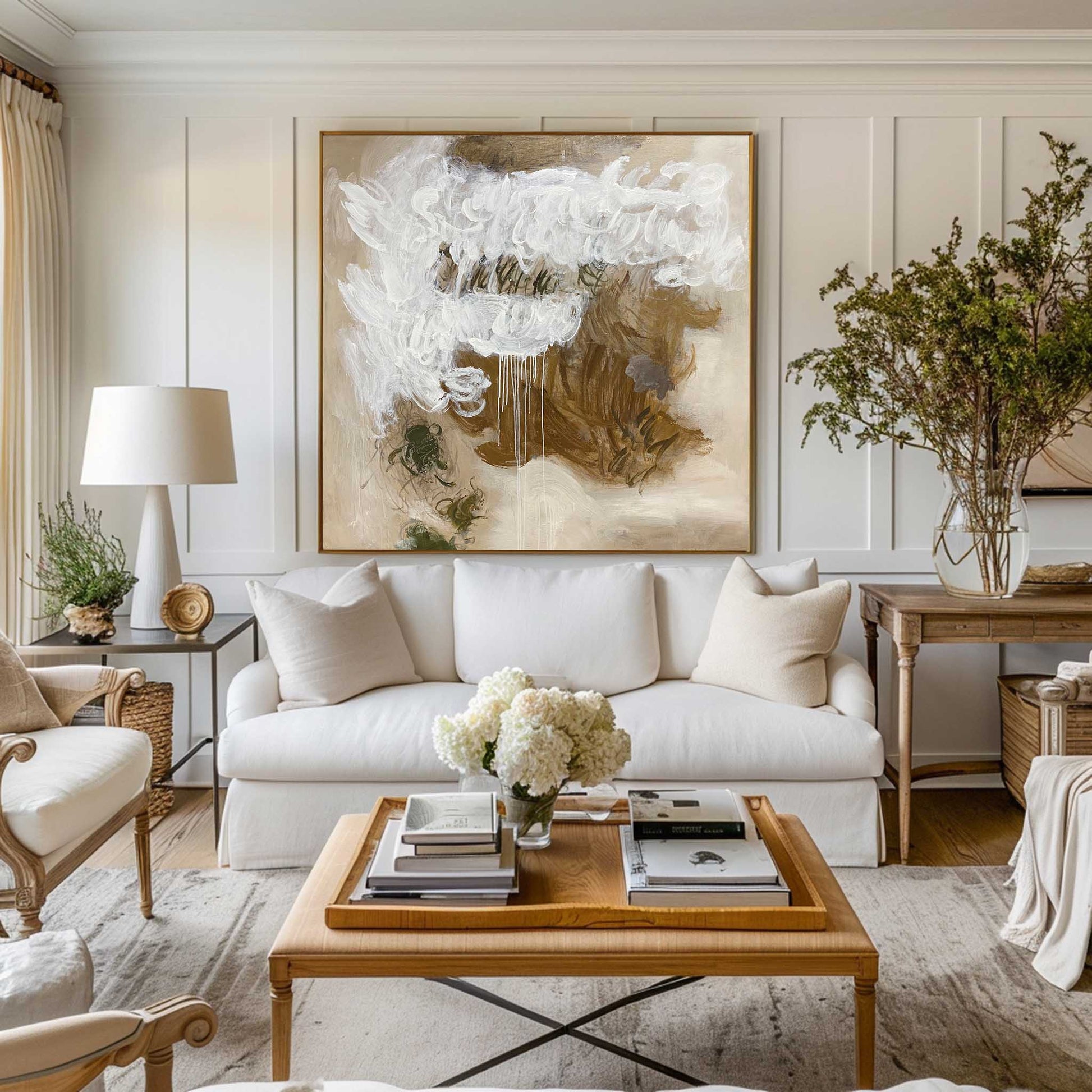 Discover the beauty of contemporary abstract oil painting featuring textured white and earthy tones. This stunning artwork captures the essence of modern design, adding depth and sophistication to any space. Perfect for art enthusiasts and collectors, this unique piece blends versatility with artistic expression, creating a striking focal point in your home or office. Explore how this rich combination of colors and textures can elevate your interior decor today!