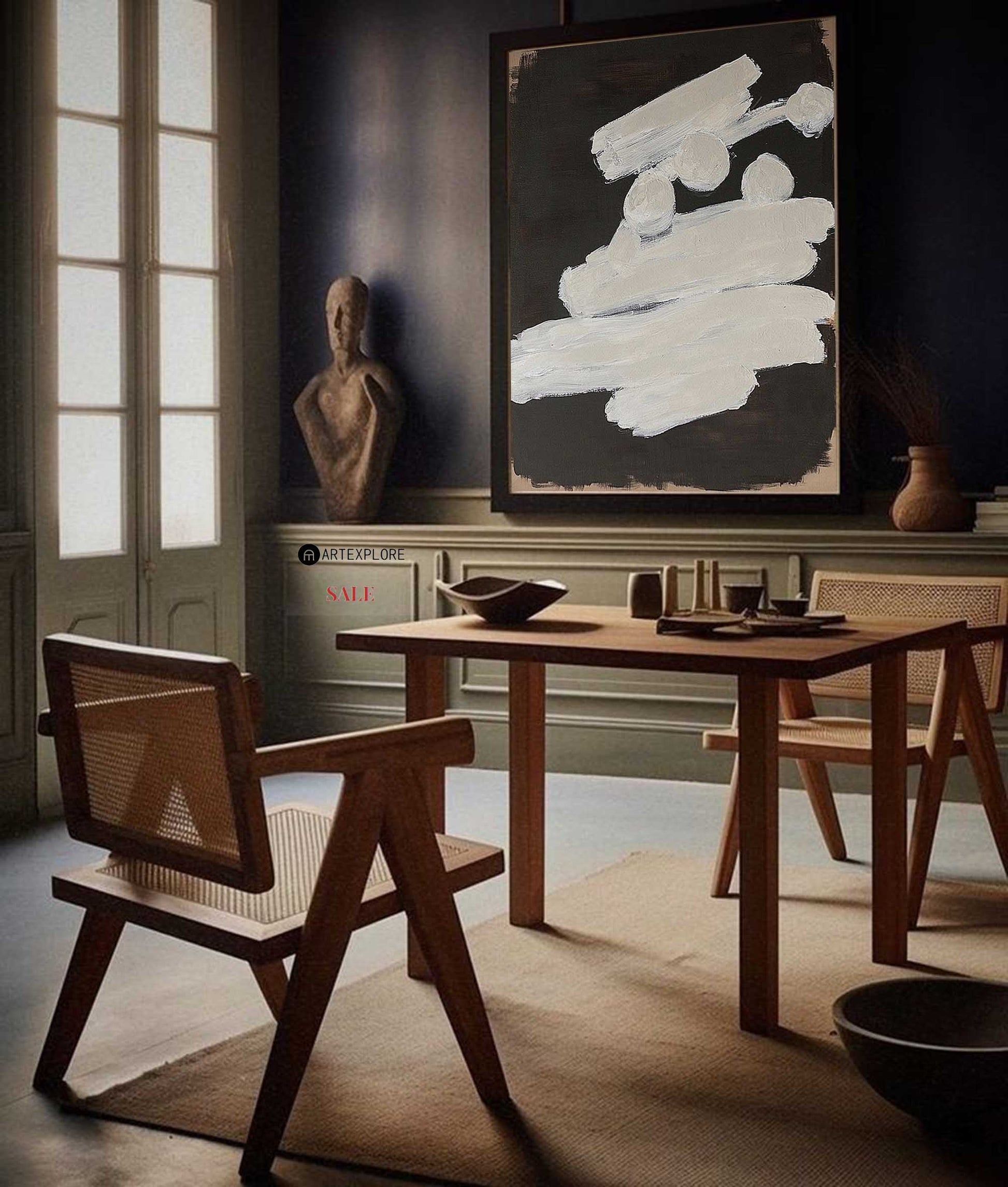 Discover the elegance of contemporary minimalist abstract oil painting in striking black and white. Perfect for modern decor, this artwork enhances any space with its sophisticated and timeless design. Elevate your home or office aesthetic with this stunning piece that embodies simplicity and style. Shop now to bring a touch of modern artistry into your life!