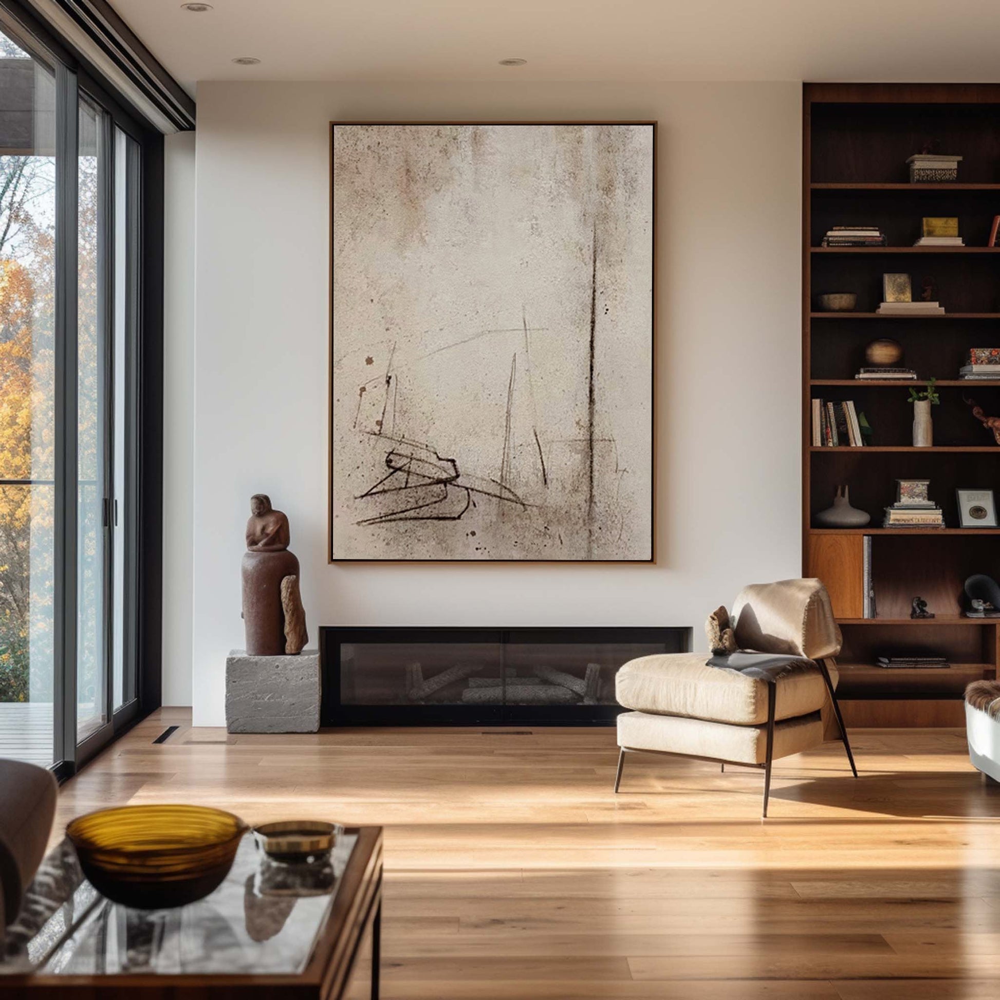 Contemporary Abstract Oil Painting with Subtle Textures and Lines