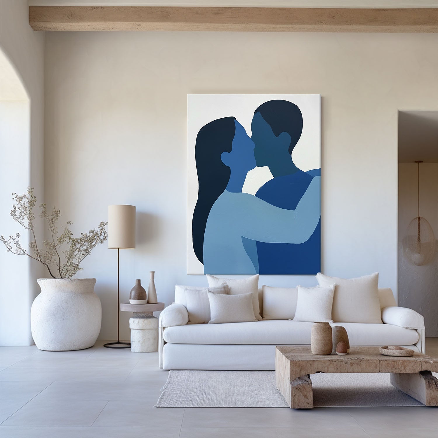 Blue Emotion: Modern Abstract Couple's Portrait Oil Painting