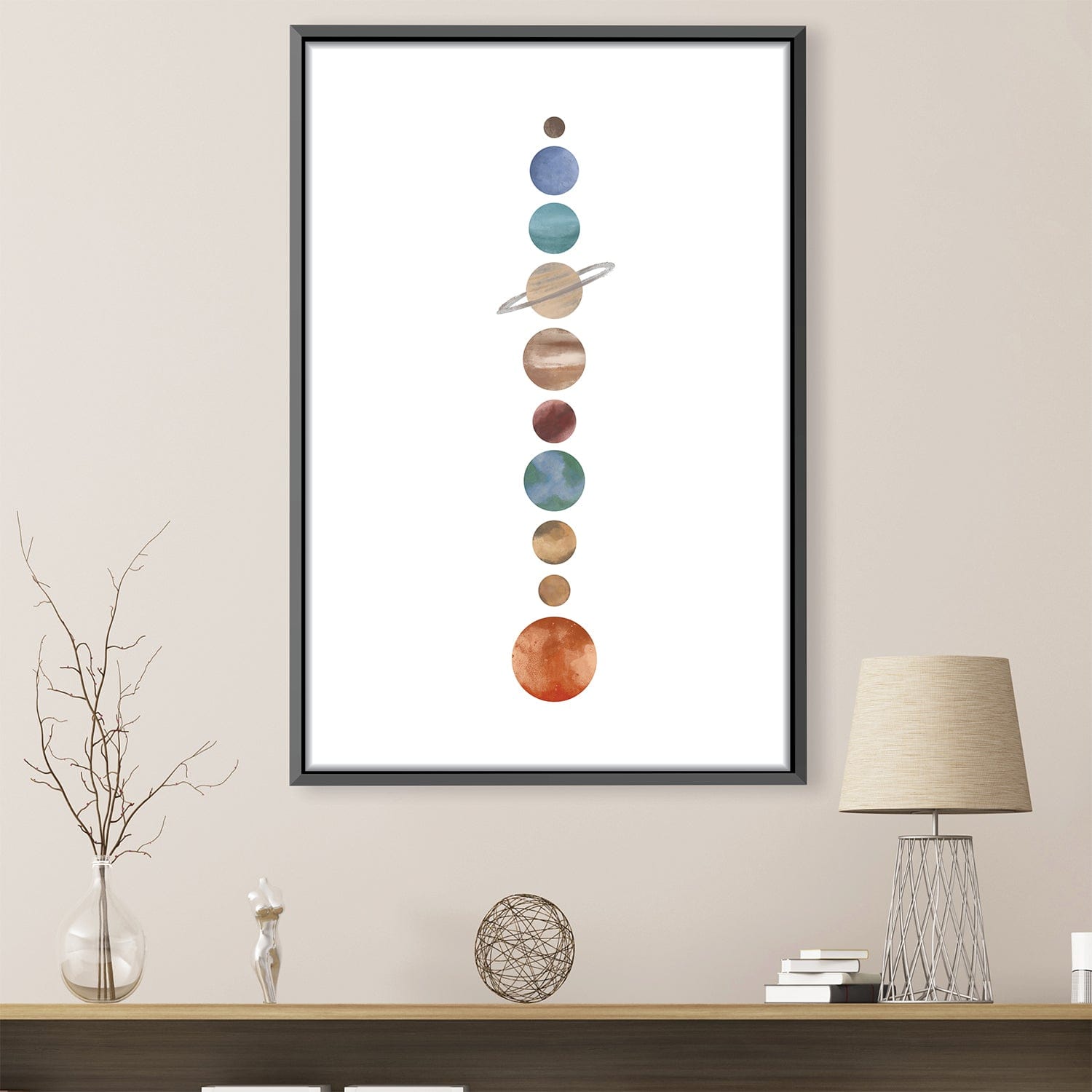 Celestial Harmony Abstract Oil Painting of Planets in Space