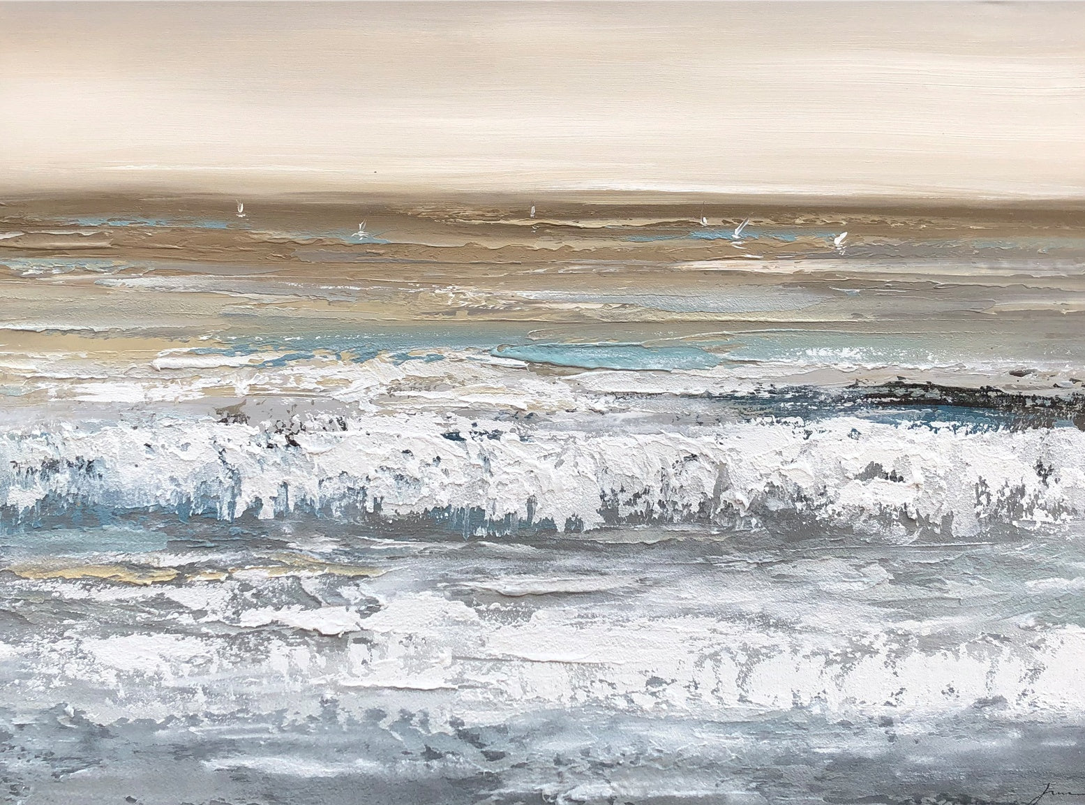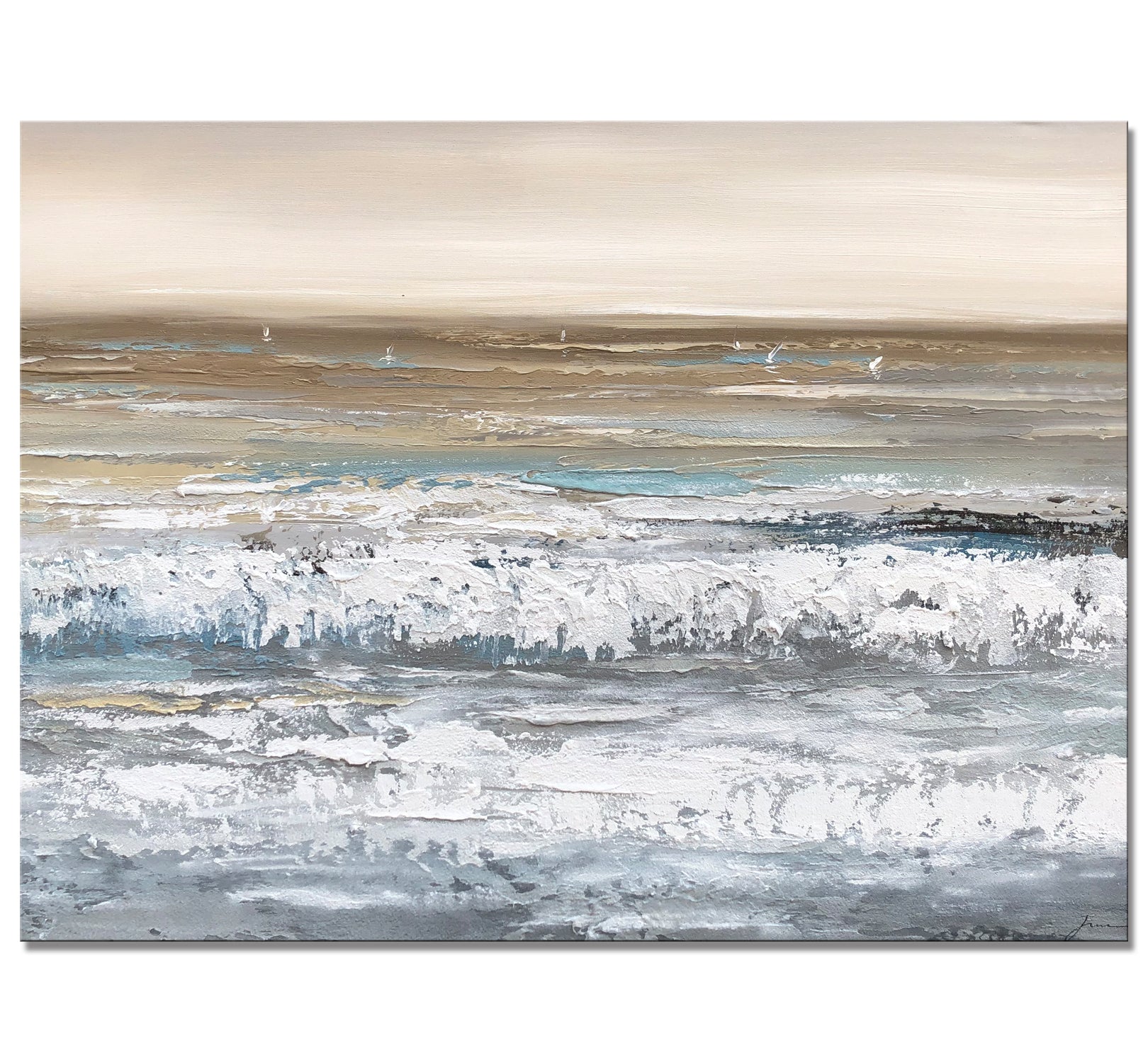Serene Coastal Waves - Abstract Oil Painting for Tranquil Home Decor