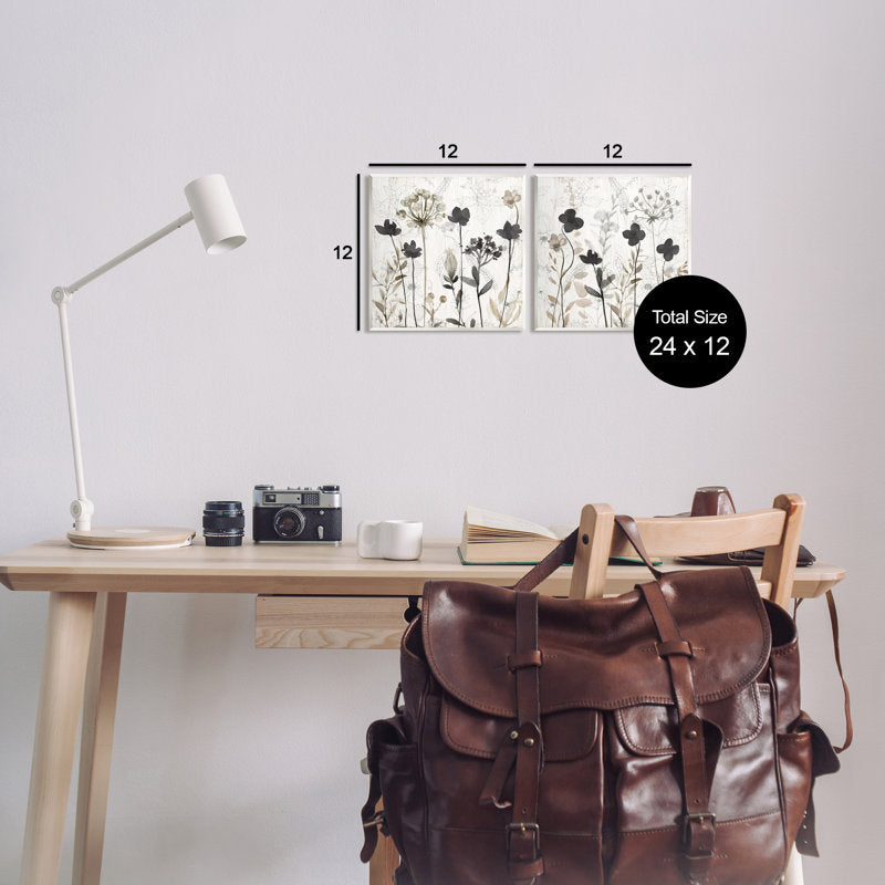 Neutral Floral Boho Wall Art - Rustic 2-Piece Oil Painting Set for Home Decor