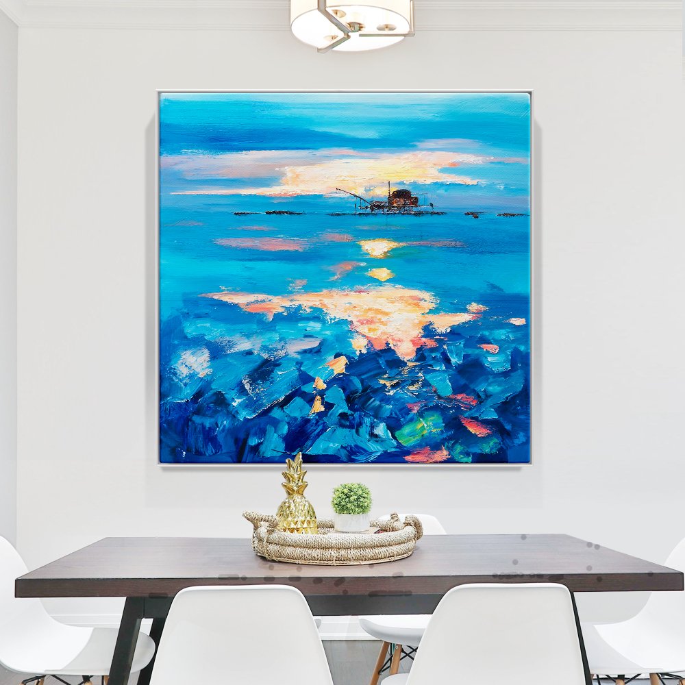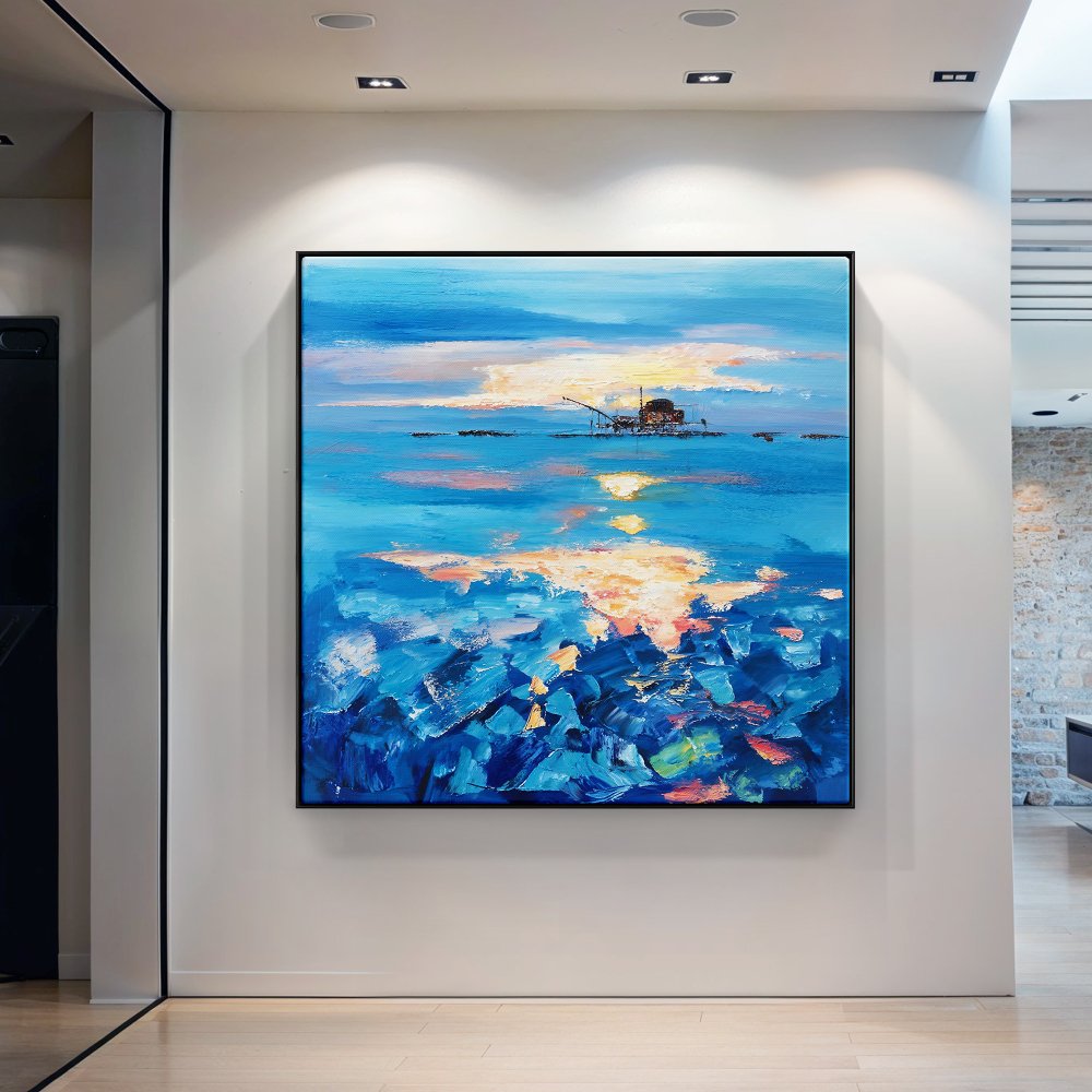 Serene Oilrig Sunrise Over Vibrant Blue Waters