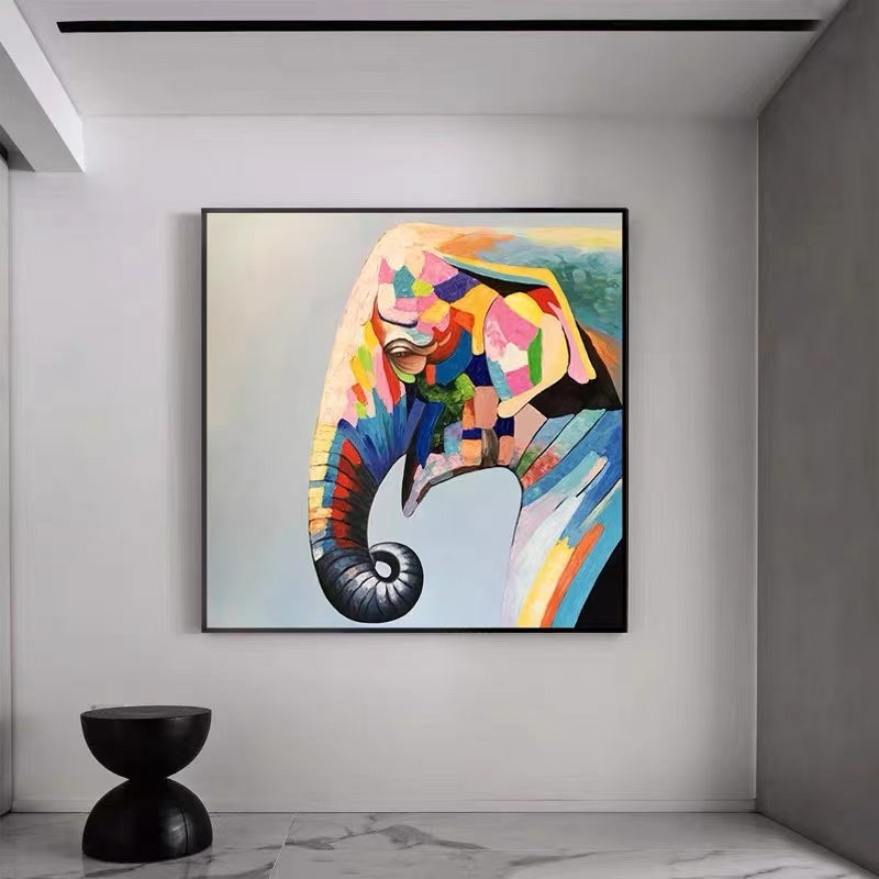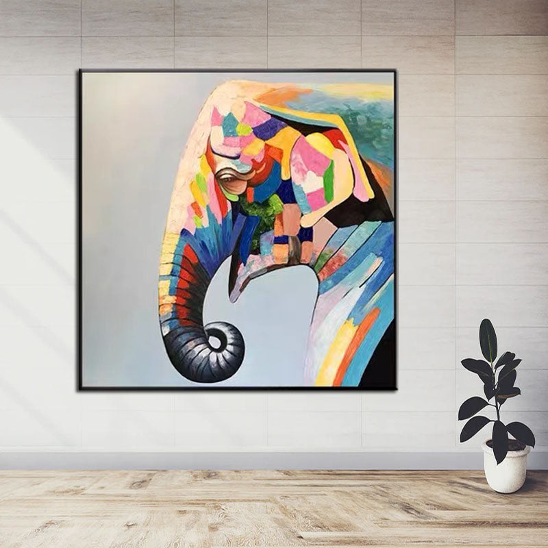 Discover the stunning Colorful Elephant Portrait, a vibrant abstract oil painting that adds a touch of modern elegance to any decor. This eye-catching artwork features a beautifully detailed elephant, bursting with color and personality, making it a perfect focal point for your living space. Transform your home with this unique piece, ideal for animal lovers and art enthusiasts alike. Shop now and elevate your interior design with this extraordinary portrayal of nature’s majesty!