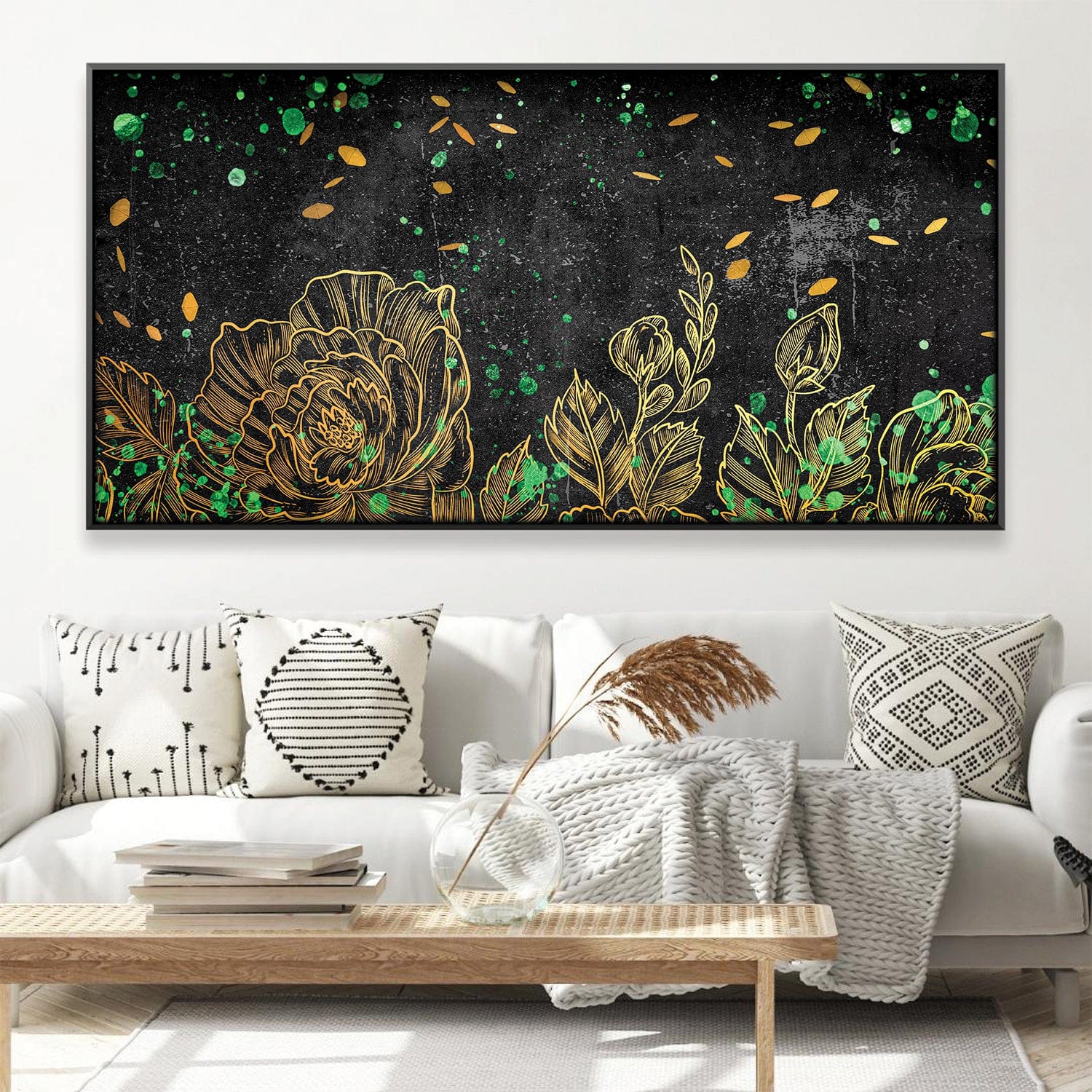 Discover the captivating charm of our Elegant Floral Oil Painting, featuring exquisite green and gold accents against a striking black canvas. This stunning artwork elevates any space with its vivid colors and intricate details, making it the perfect statement piece for homes and offices. Illuminate your walls with this unique blend of sophistication and artistic flair. Shop now to transform your decor with this beautiful floral masterpiece!