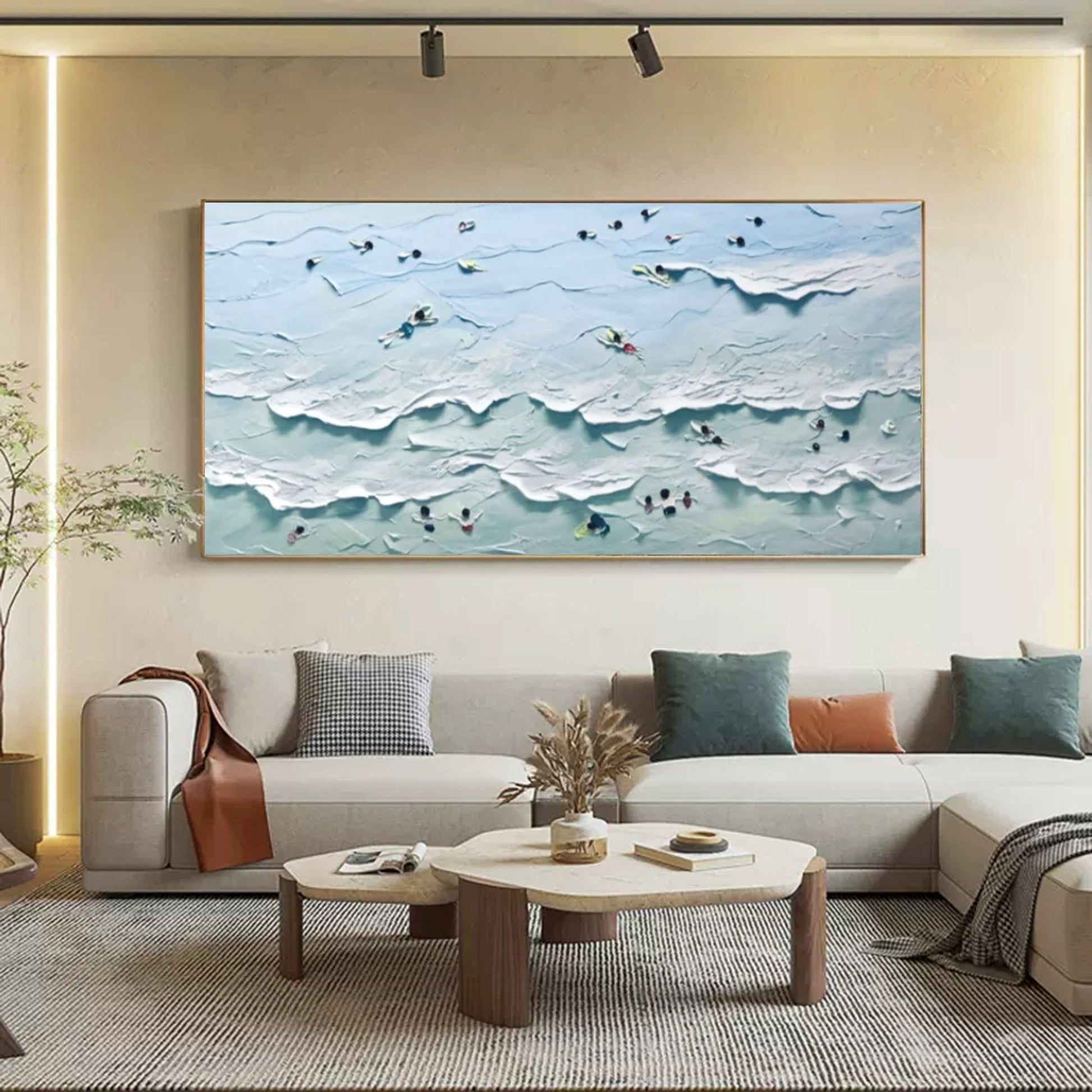Textured Ocean Wave Oil Painting - Coastal Serenity Art for Home Decor