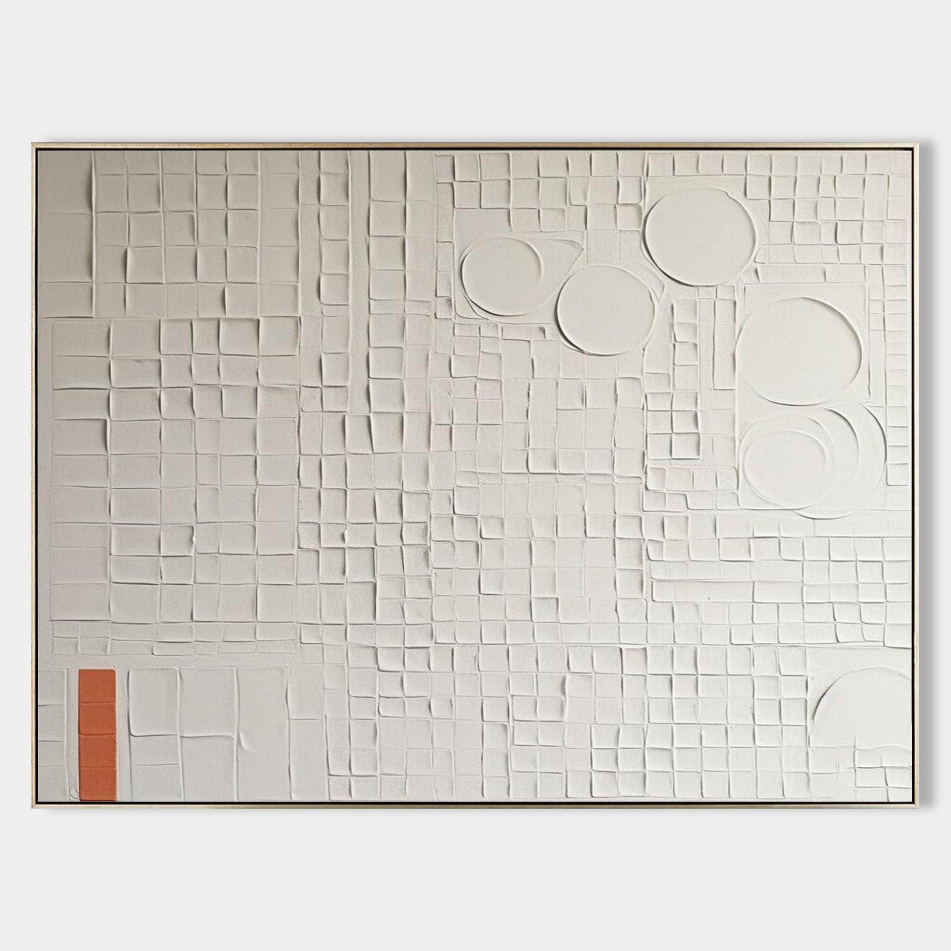 Textured White Oil Painting with Geometric Shapes and Subtle Color Accents
