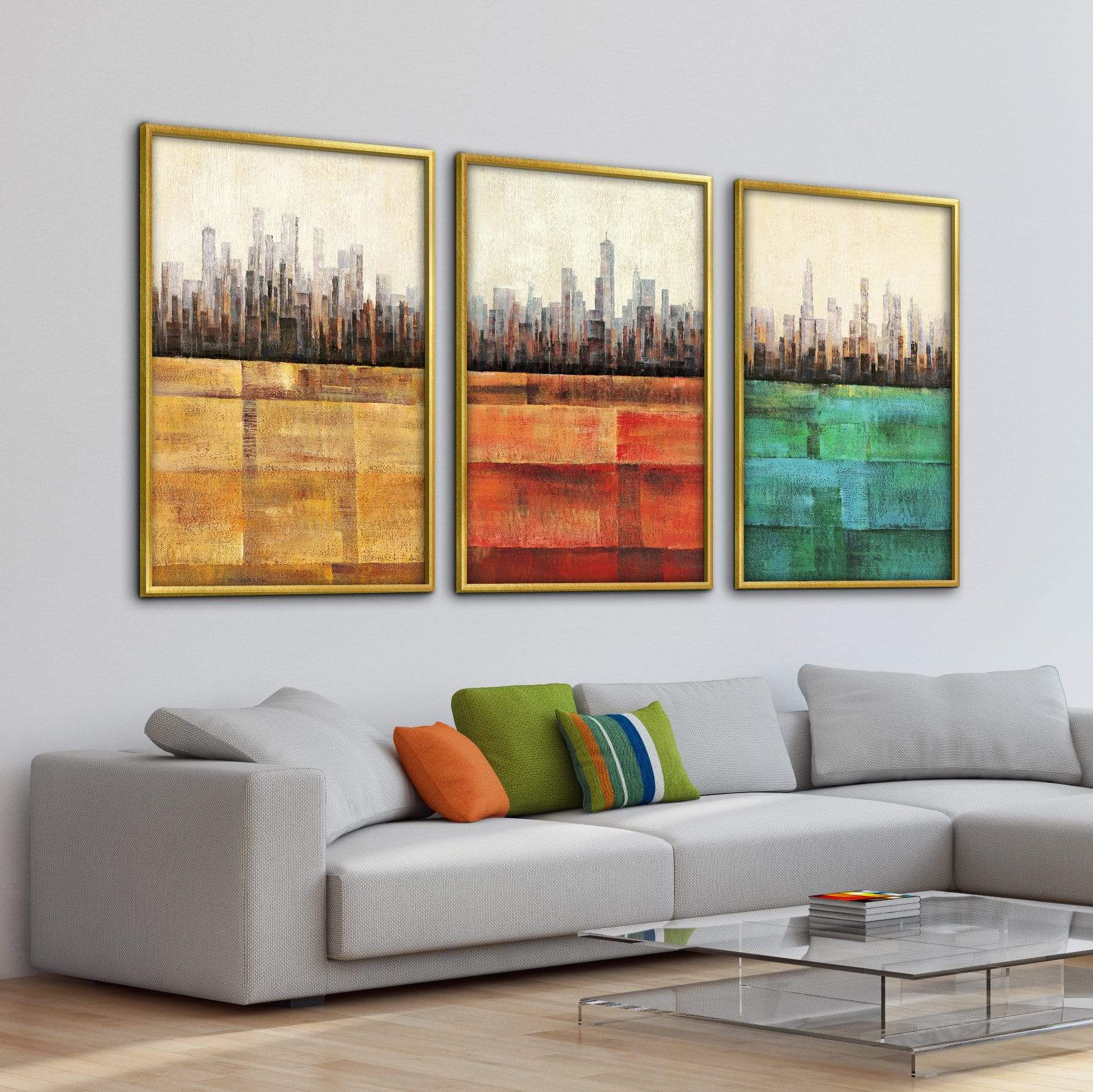 Cityscapes in Vibrant Hues - Modern Abstract Oil Painting Triptych