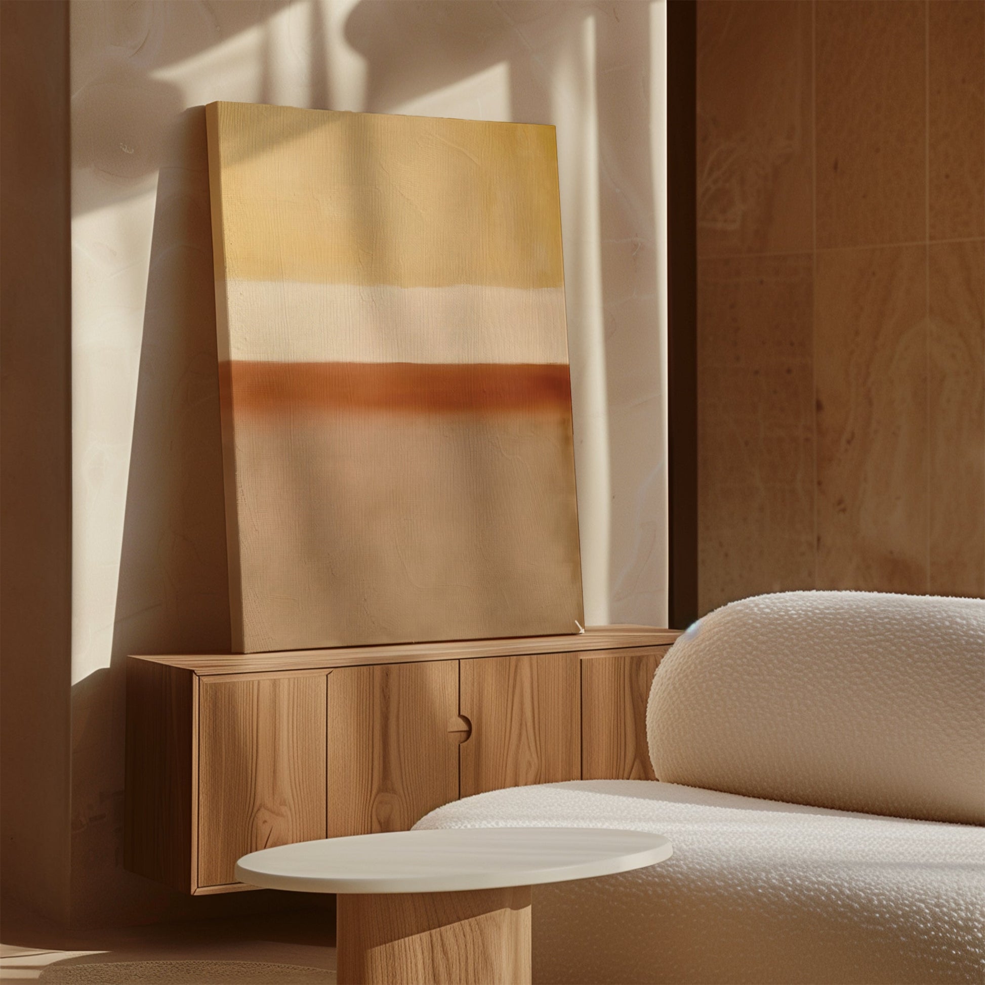 Serene Sand Gradient Abstract Oil Painting for Modern Home Decor