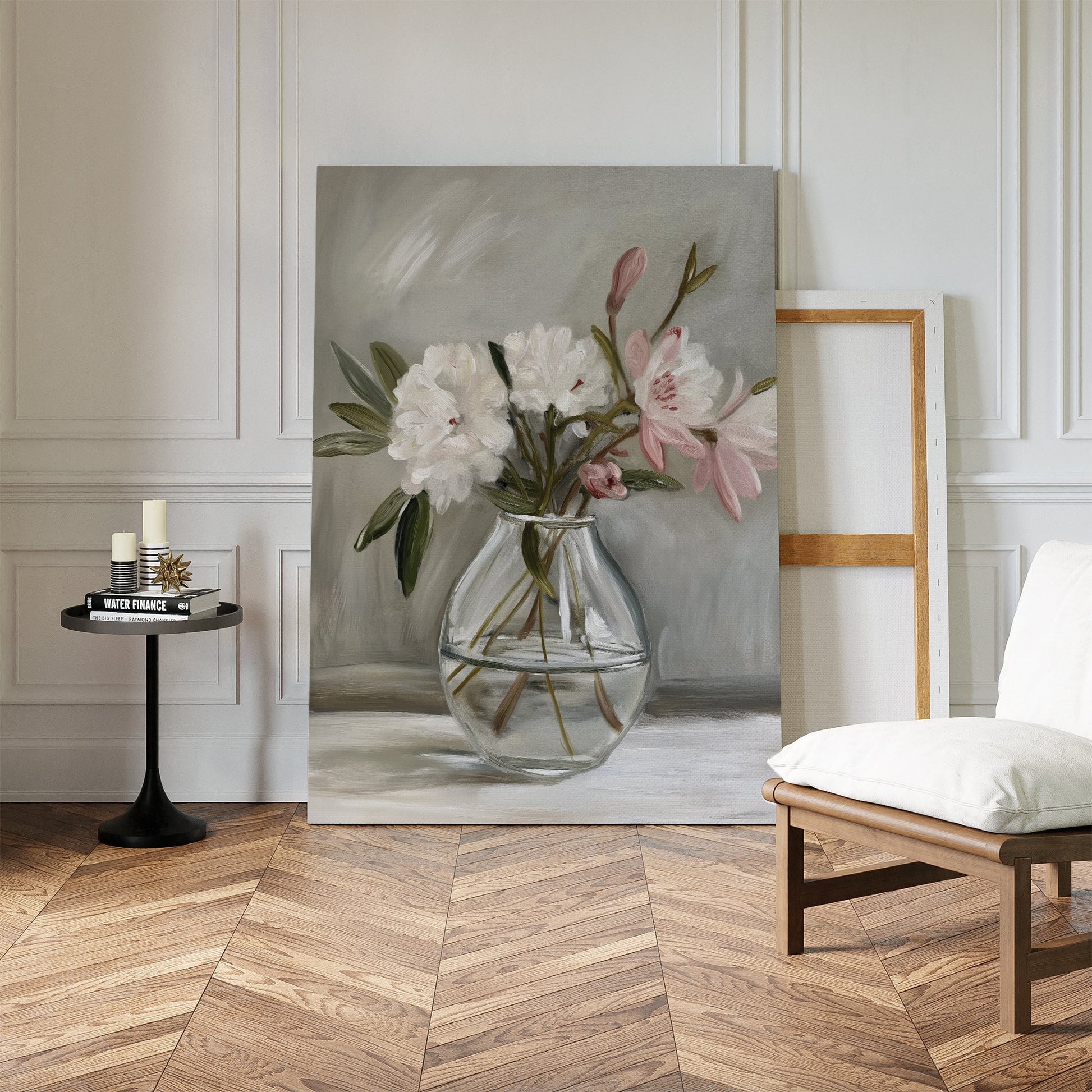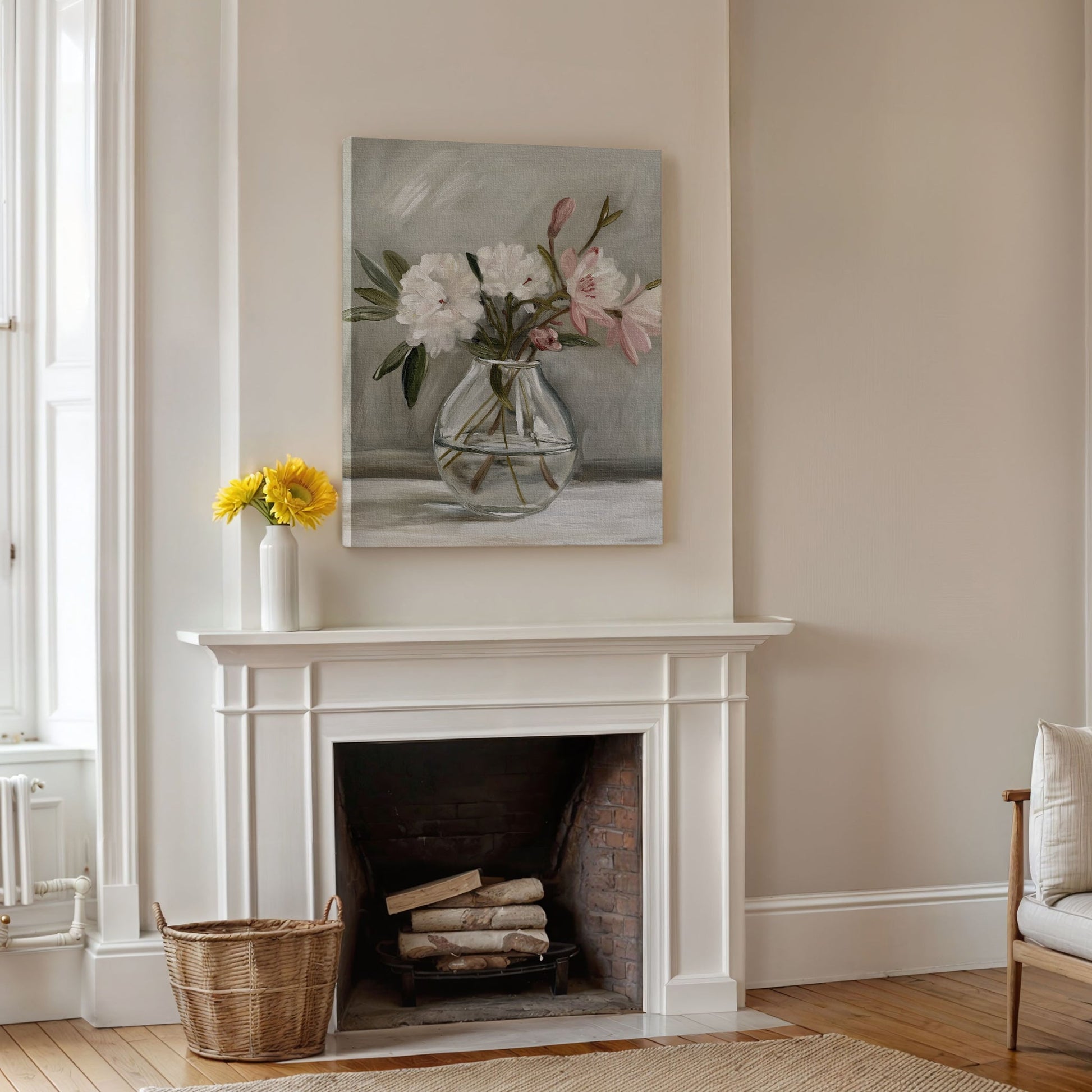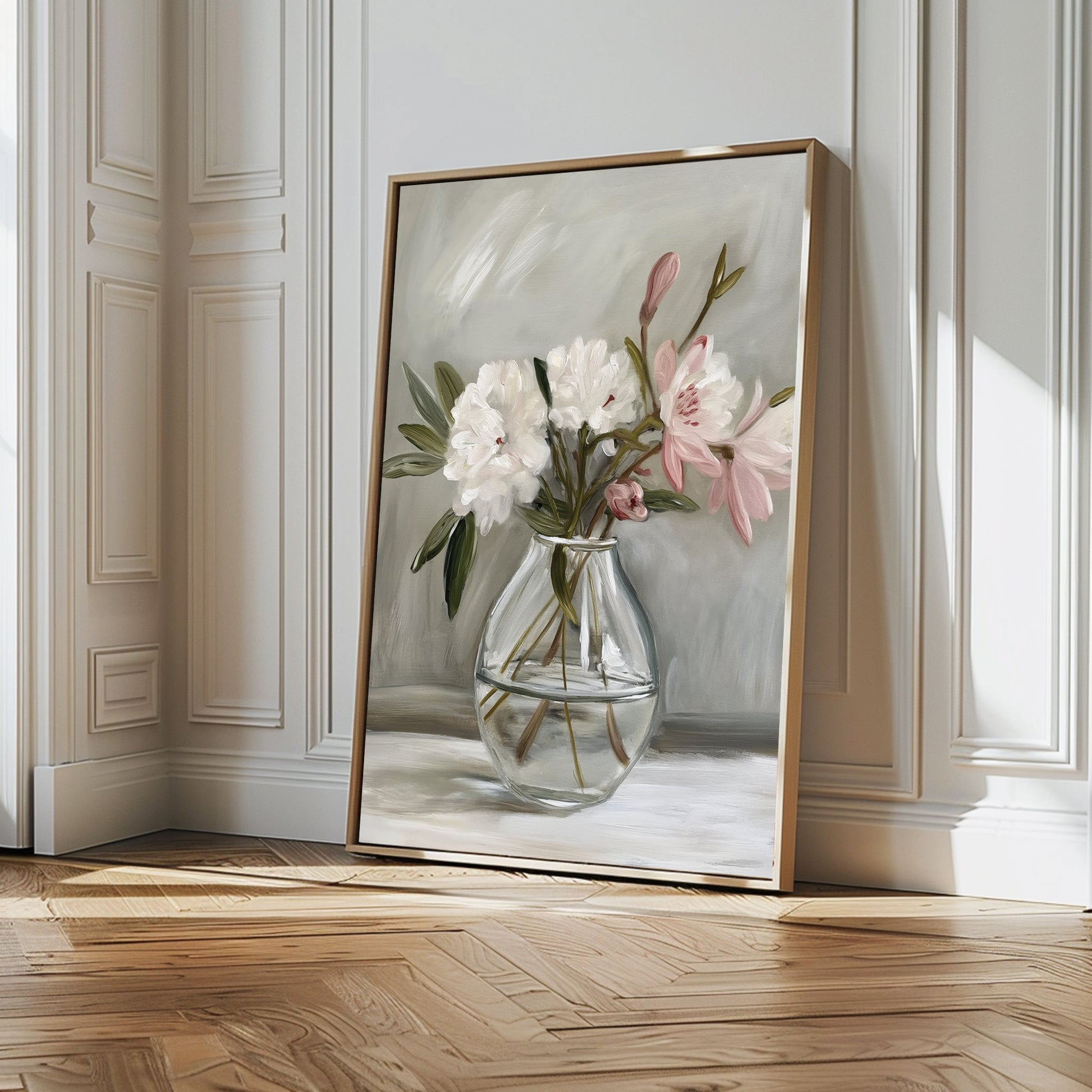Elegant Floral Still Life Oil Painting in Glass Vase for Home Decor
