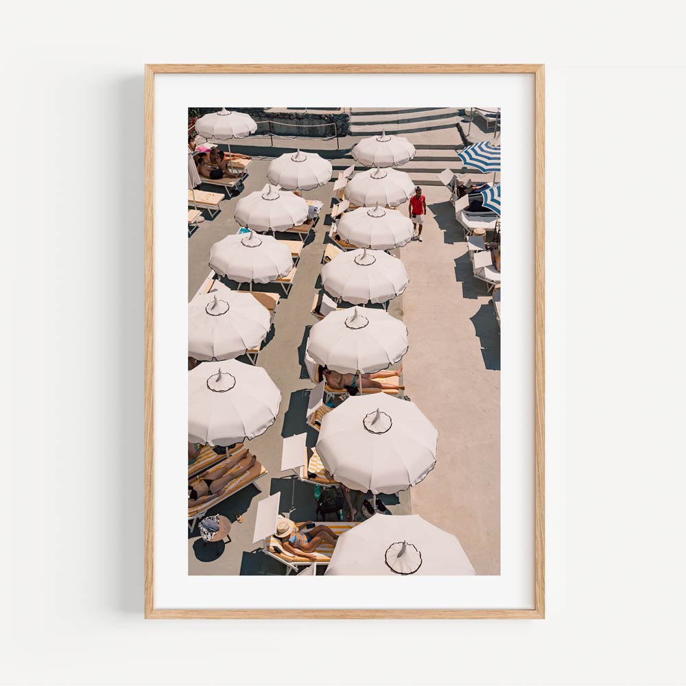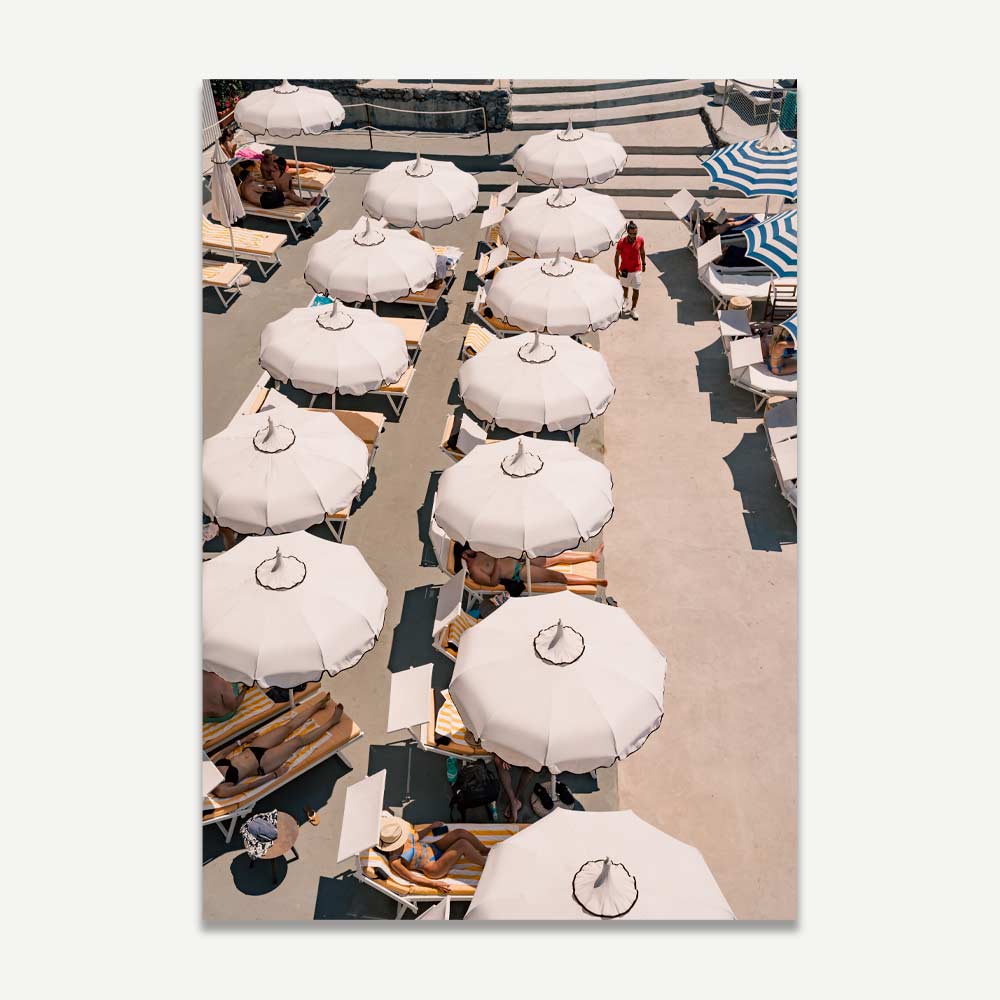 Tranquil Beach Loungers Under Sun Umbrellas – Summer Vibes Oil Painting