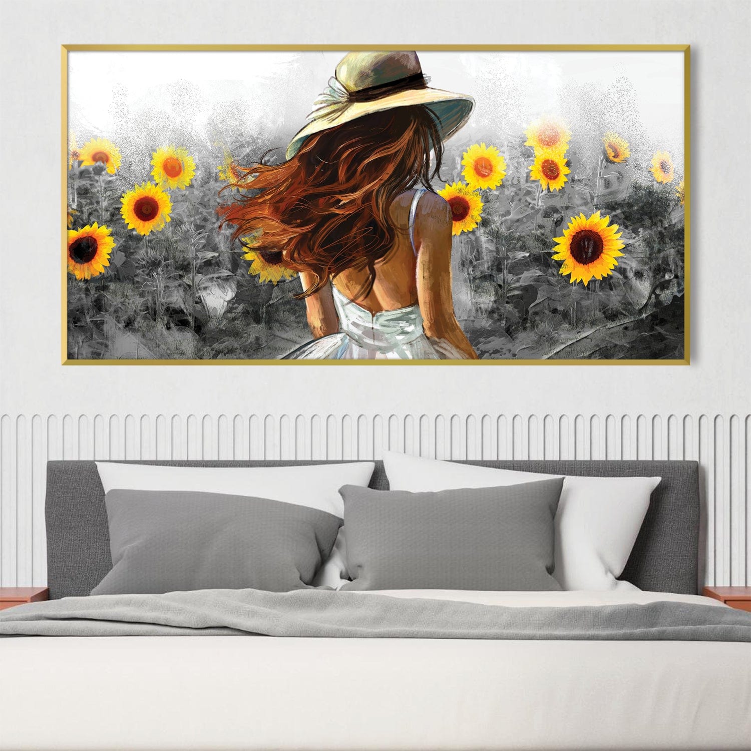 Discover 'Sunflower Serenity' – a captivating oil painting featuring a woman in a flowing white dress surrounded by vibrant sunflowers. This enchanting artwork beautifully captures the essence of nature and tranquility, perfect for art lovers and home decor enthusiasts seeking to add a touch of elegance and warmth to their space. Explore the serenity and joy that sunflowers bring to life through this stunning piece.