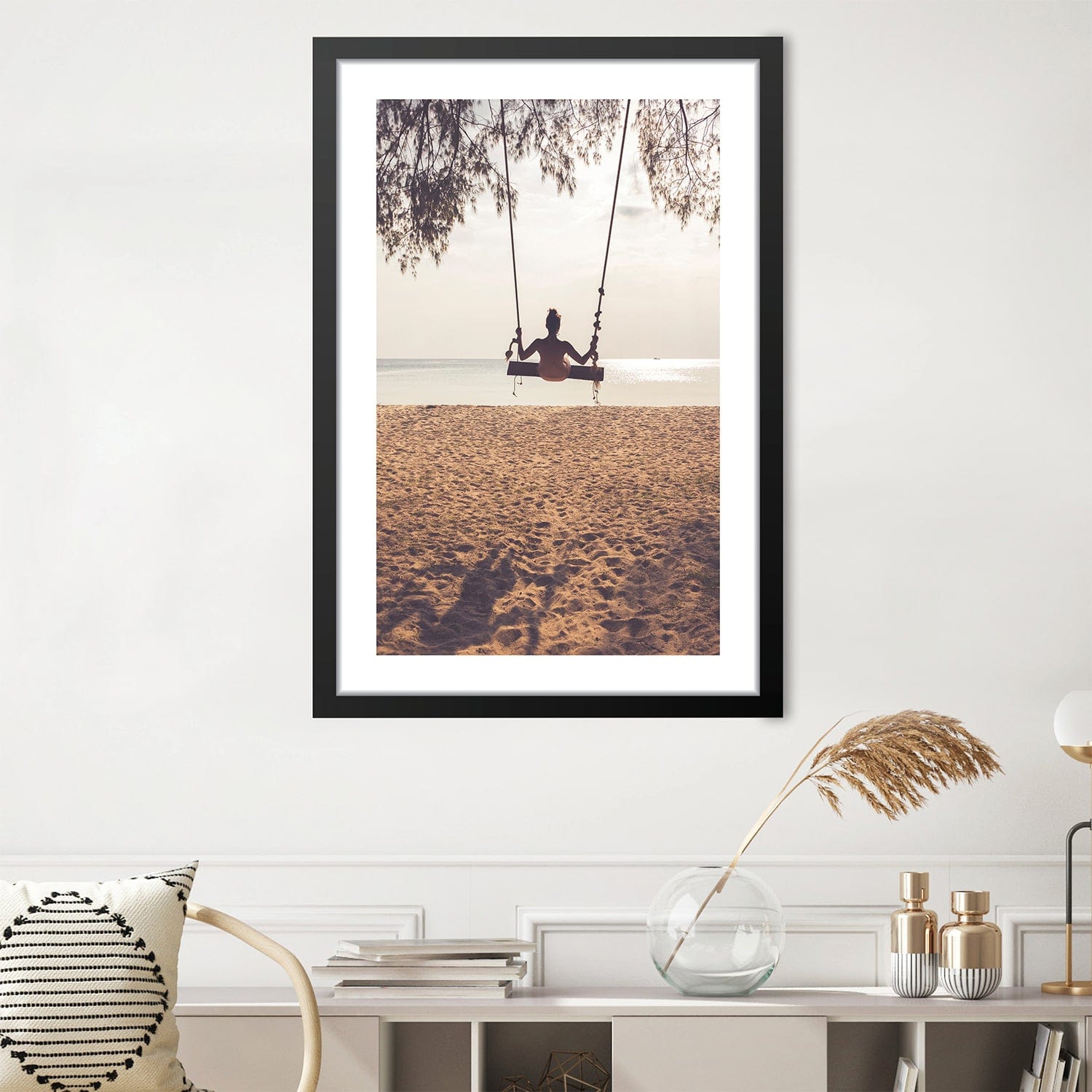 Tranquil Beach Swing Oil Painting for Relaxing Home Decor